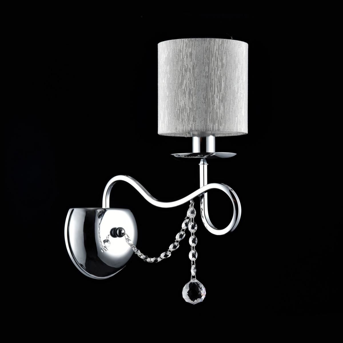 Нарядные и изящные светильники Morel выполнены в классическом стиле. Светлые абажуры сделаны из органзы, арматура – из металла цвета "хром". Каждый из светильников этой серии декорирован хрусталем в виде лент из кристаллов в форме октагонов и шара.