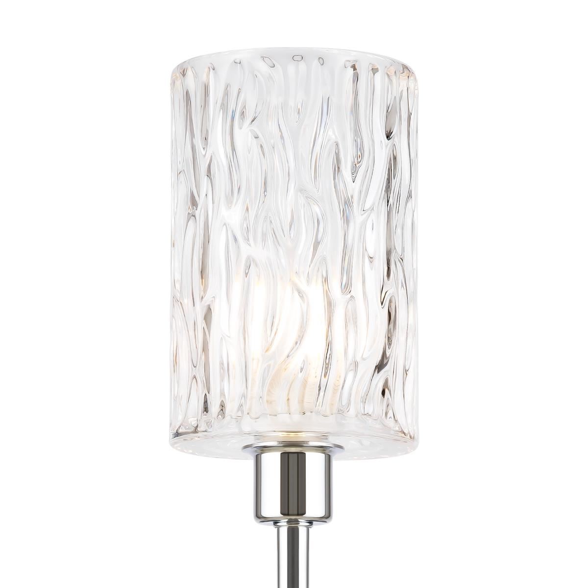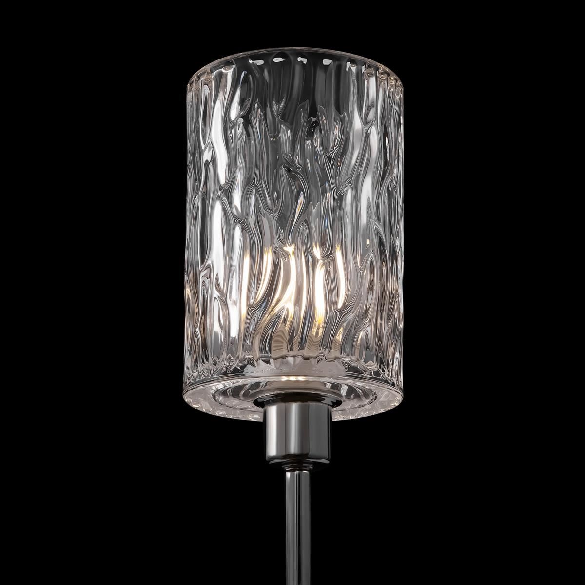 Строгие прямые линии в сочетании с изяществом неоклассики дают яркий, несколько эклектичный дуэт – эта серия приживется в различных стилевых решениях интерьера, как подчеркнуто классических, так и в современных. Хромированная металлическая арматура в сочетании с прозрачным стеклом дарит ощущение легкости и свежести. Интересно фактурное, рельефное исполнение плафонов – эта деталь добавляет композиции объема, многомерности и создает контраст с глянцевыми стеклянными рожками. Две люстры на 8/6 плафонов и бра позволяют организовать комплексное освещение пространства в единой стилистике.