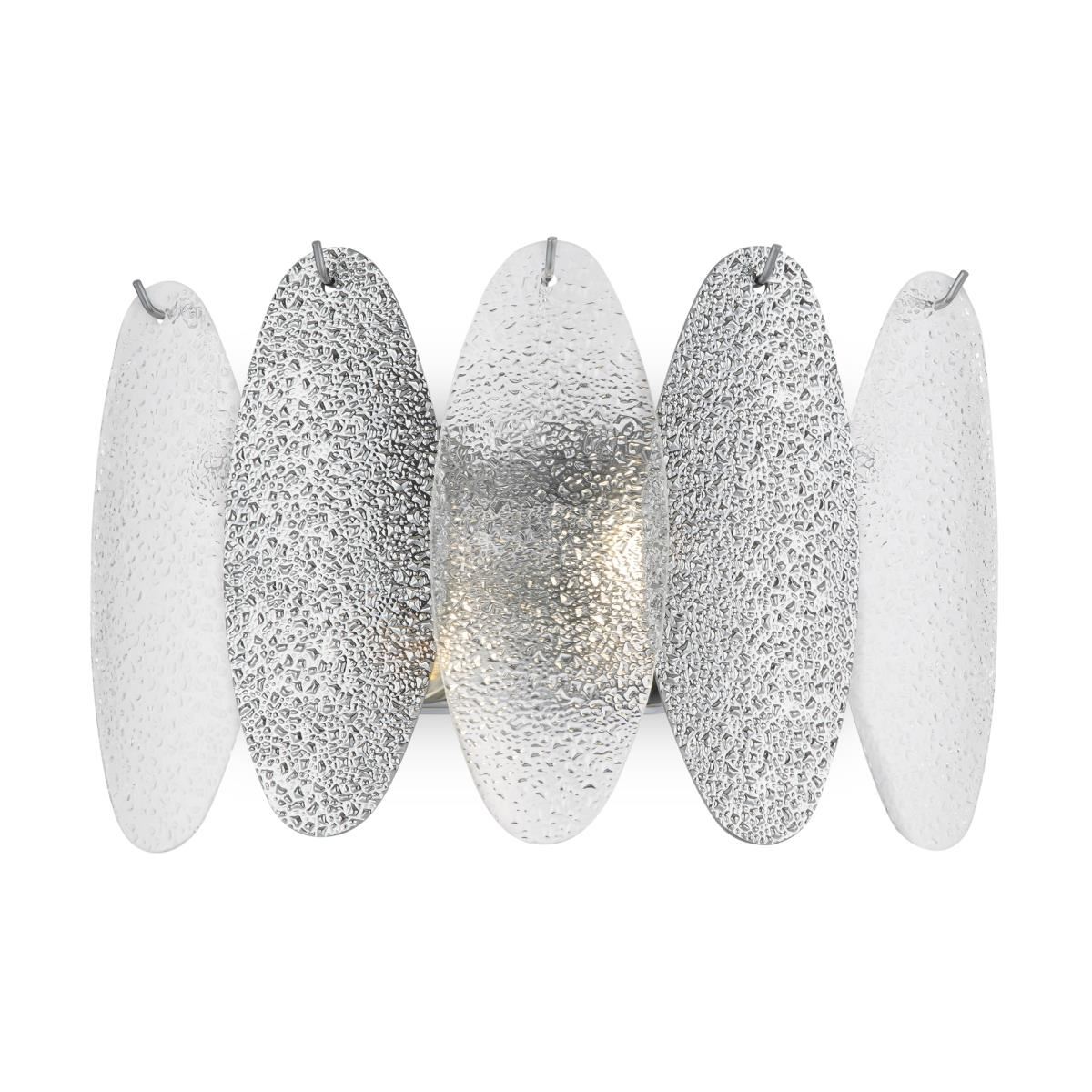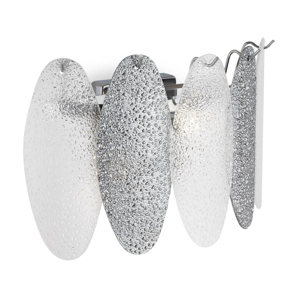 Сложность и в то же время утонченность фактурного декора – уникальная особенность серии Demure. Металлическая арматура светильника окрашена в цвет хрома. Источники света обрамляют вытянутые пластины – овальные лепестки, формирующие гармоничный и изящный силуэт. Мягкий свет, струящийся сквозь фактурный декор, напоминает блики морских волн. Водная гладь преломляется и отражается в пластинах, образуя переливы. Серия включает люстру и бра, что позволяет организовать комплексное освещение в гостиной, спальне и любых жилых пространствах. Современные формы модели актуальны для различных стилей – от элегантной неоклассики и торжественного ар-деко до фьюжн и эклектики.