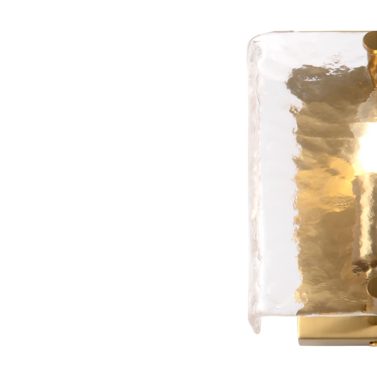 Выразительная фактура стеклянного декора – изюминка серии Fresco. Лаконичная металлическая арматура светильника выполнена в благородном цвете латуни....