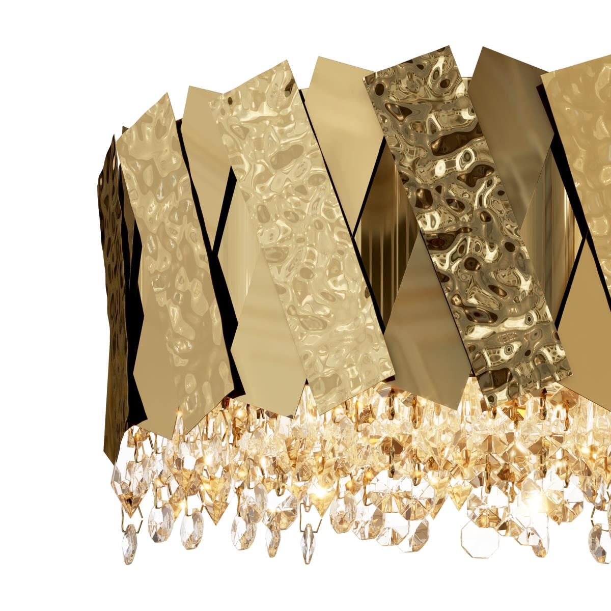 Почувствуйте настроение щедрого ар-деко вместе со светильниками серии Artisitico. Декоративные стеклянные подвески на люстрах и светильниках, как блеск паеток на пышных юбках, наполняют помещение атмосферой роскошной вечеринки. В сердце светильника скрыта игра контрастов: гладкое расплавленное золото сковано в пластинах, создающих четкий геометричный рисунок, задающий ритм окружающему пространству. Серия состоит из подвесных люстр и бра для придания общего настроения интерьеру и создания в нем ярких акцентов.задающий ритм окружающему пространству.