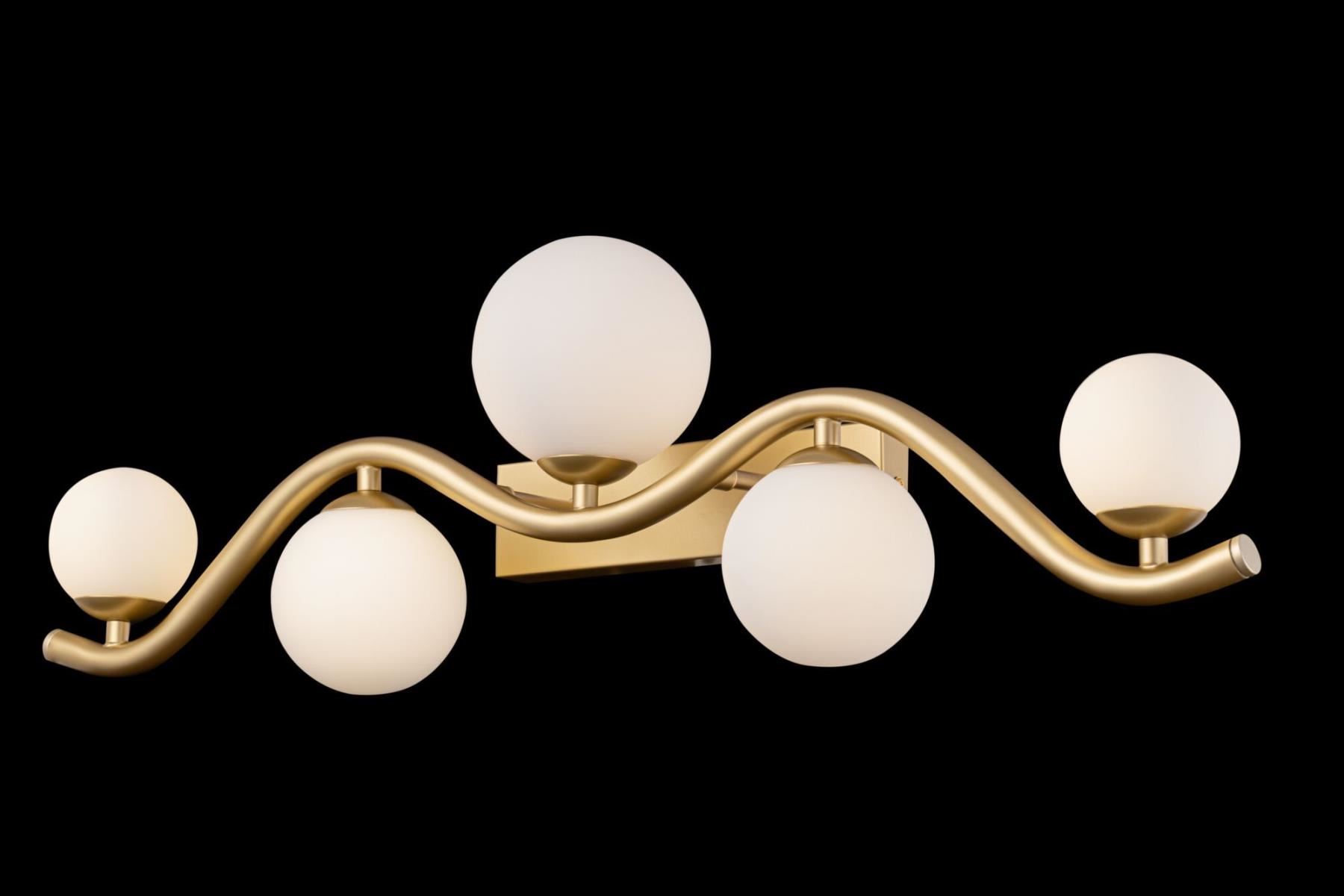 Светильники этой серии отличаются способностью создавать теплую комфортную атмосферу и эргономично вписываться в освещаемое пространство. На плавных волнистых линиях металлического каркаса расположились матовые стеклянные плафоны, которые мягко рассеивают свет ламп. Модели серии представлены в золотом и хромированном цвете. Высоту подвесных светильников можно отрегулировать длиной тросов.