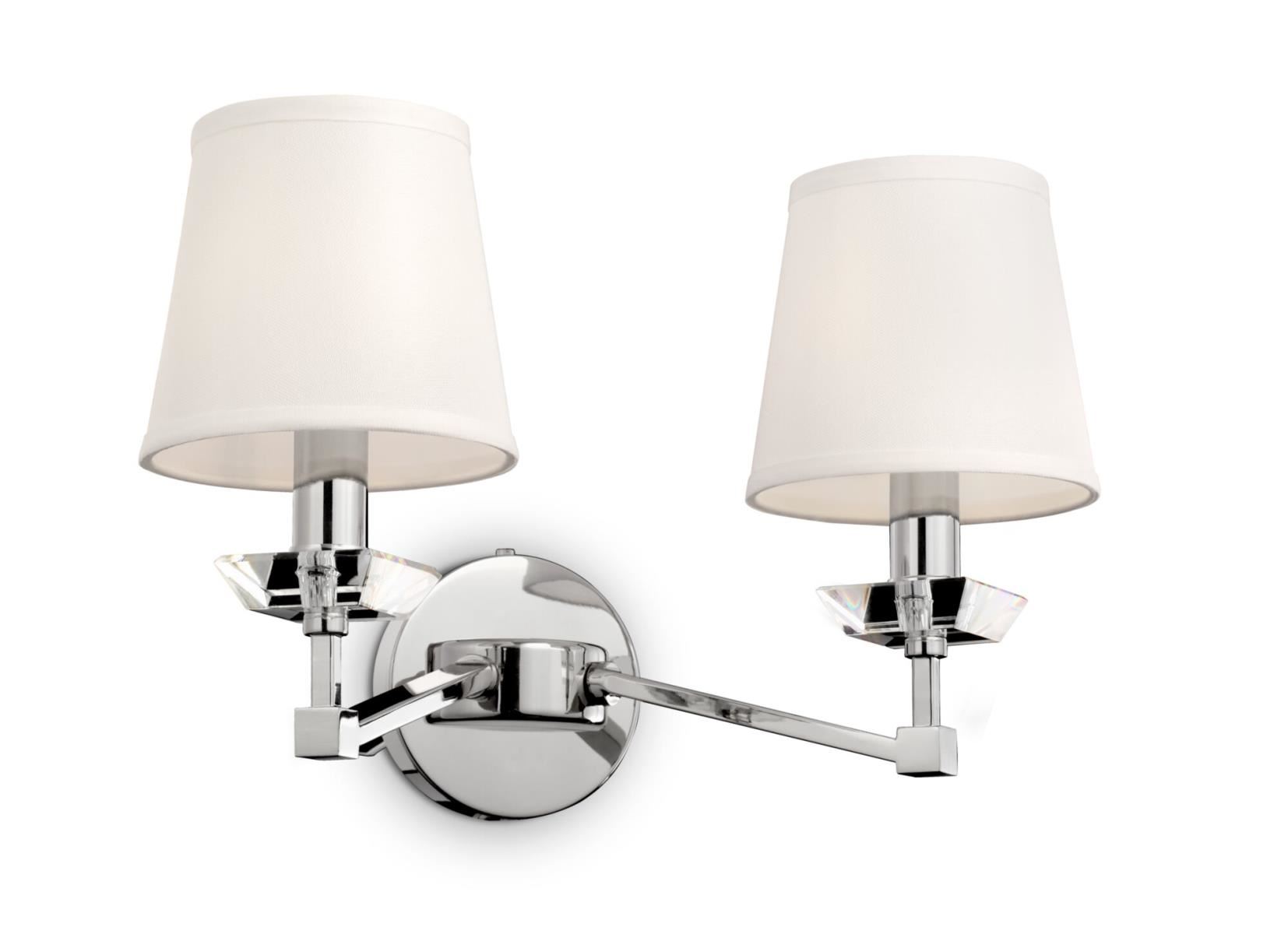 Светильники серии обладают легким, современным обликом, сочетающим в себе элегантность классики и линейность конструктивизма. Арматура изготовлена из металла с гальваническим покрытием цвета никель. Массивные трапециевидные элементы из прозрачного стекла украшают основание и рожки. Абажуры из белого льна, нанесенного на ПВХ, мягко рассеивают свет ламп. Высоту люстр можно регулировать, изменяя длину цепи.