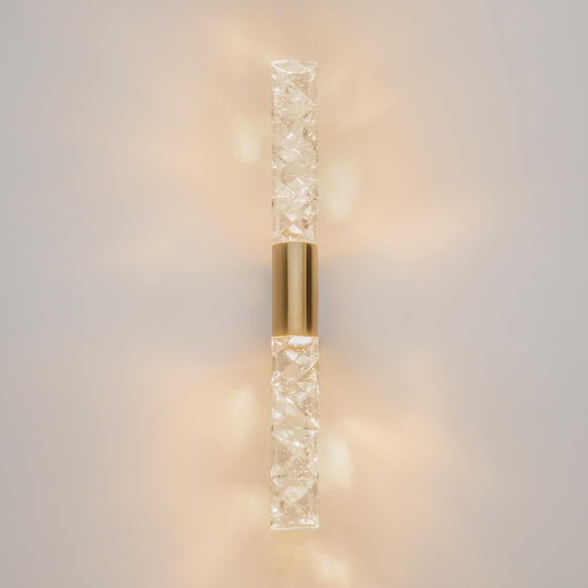 Цвет арматуры — хром, латунь. Материал арматуры — металл. Материал плафона — хрусталь с зигзагообразным орнаментом. Оригинальный дизайн бра в стиле роскошных отелей начала 20 века. Геометрическая форма плафона создает неповторимую игру света на стенах. Возможность вертикальной или горизонтальной установки. Скрытый LED-источник света. Оригинальные модели для создания атмосферы праздника и роскоши в любом интерьере.