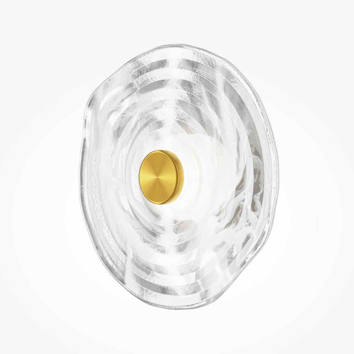 Металлическая арматура, цвет - латунь. Декоративные плафоны из литого стекла. Они рассеивают свет и дают легкие блики на стенах. Стекло плафонов может быть прозрачным или тонированным с паттерном молочного оттенка. Встроенный LED-источник света имеет цветовую температуру 3000 К, угол рассеивания — 120 градусов.