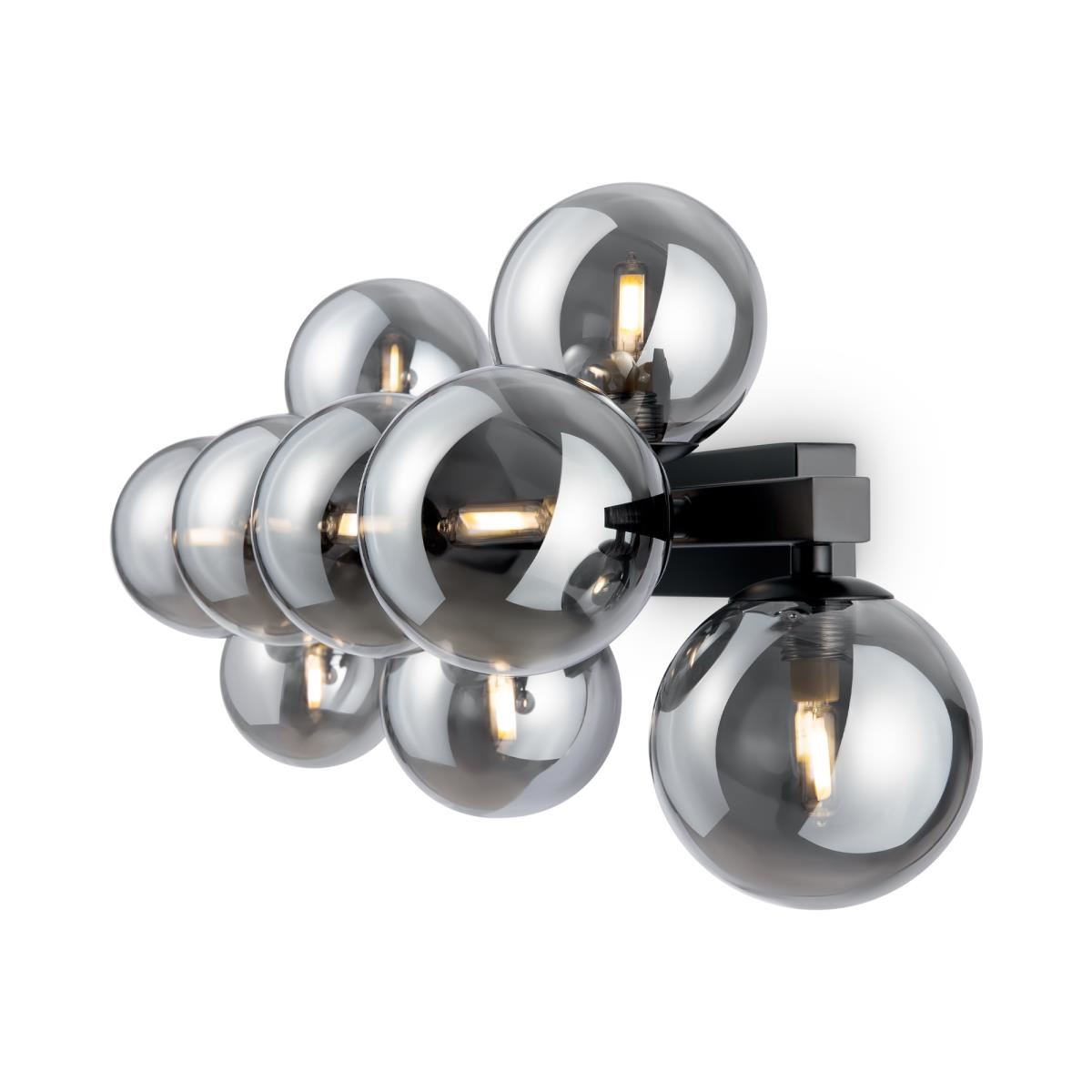 Масштабные скульптурные композиции, образованные многочисленными шарами из выдувного стекла, формируют неповторимый облик светильников серии. На полированных металлических ветвях установлены тонированные плафоны, которые мягко рассеивают и приглушают свет ламп. Модели серии представлены в трех цветах: золото, хром и латунь. Высота подвесных светильников регулируется длиной троса. Серия представлена потолочными, подвесными светильниками, и бра.