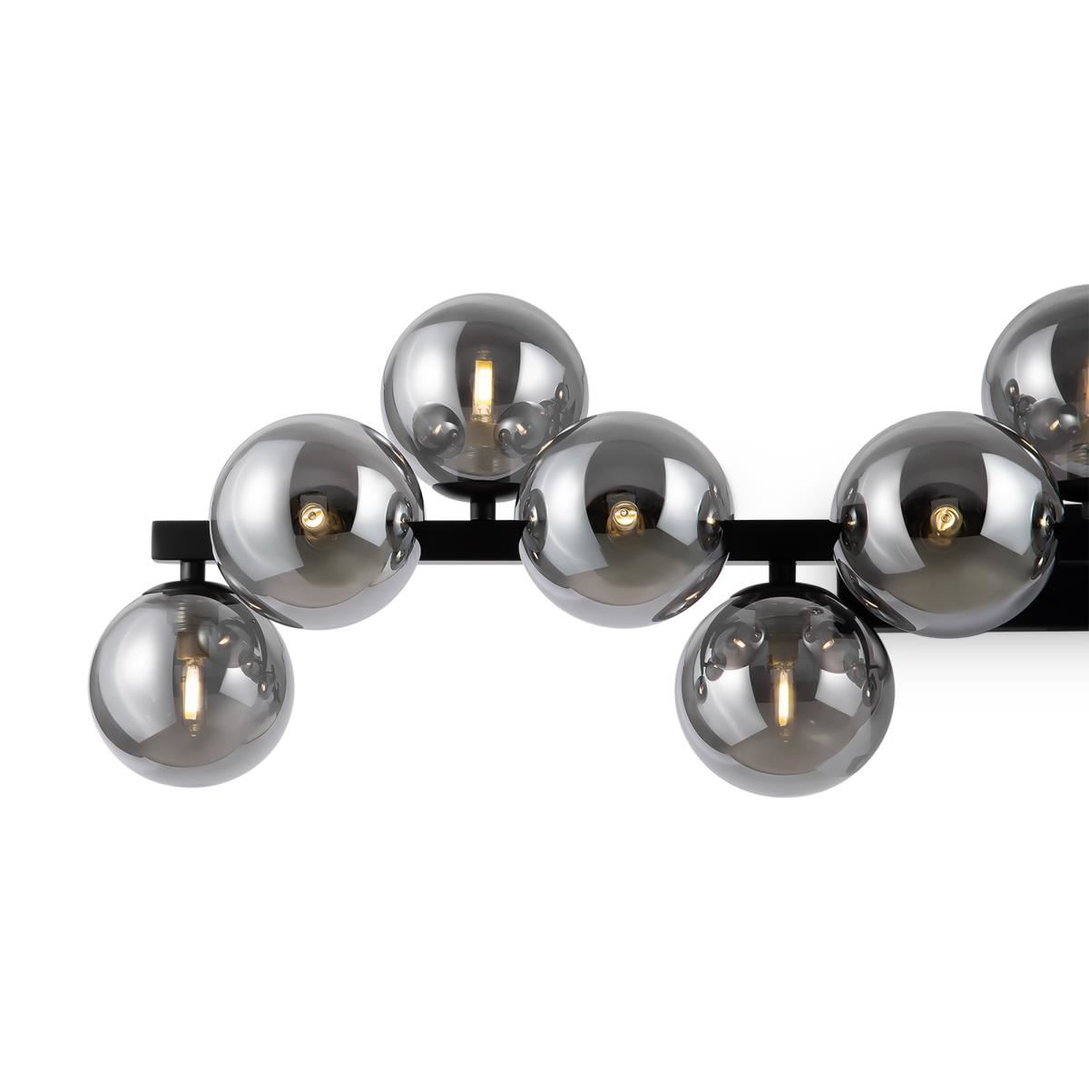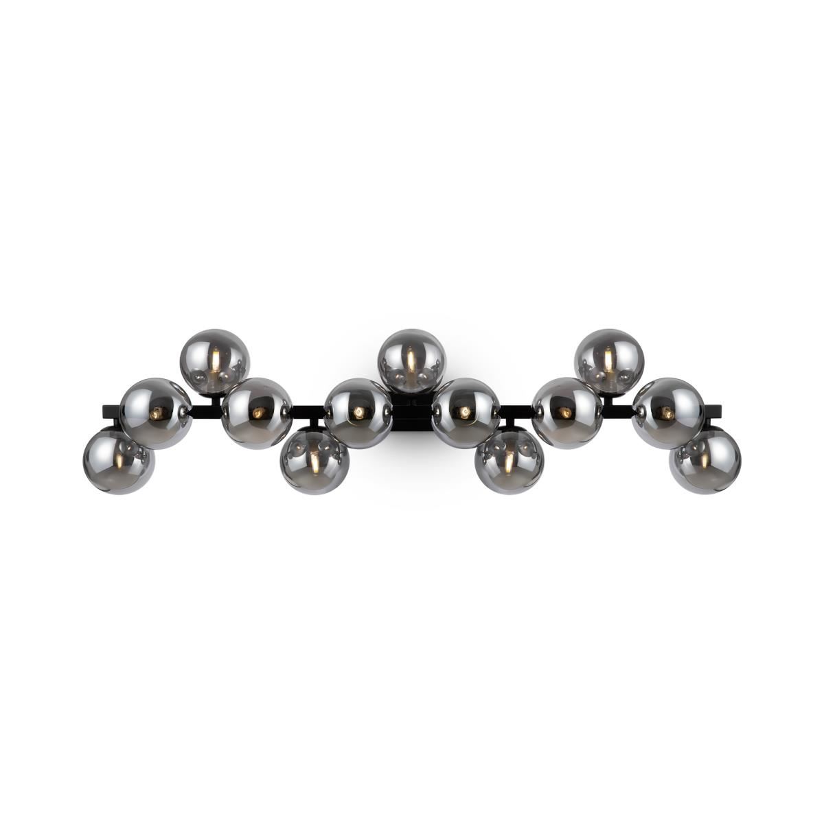 Масштабные скульптурные композиции, образованные многочисленными шарами из выдувного стекла, формируют неповторимый облик светильников серии. На полированных металлических ветвях установлены тонированные плафоны, которые мягко рассеивают и приглушают свет ламп. Модели серии представлены в трех цветах: золото, хром и латунь. Высота подвесных светильников регулируется длиной троса. Серия представлена потолочными, подвесными светильниками, и бра.