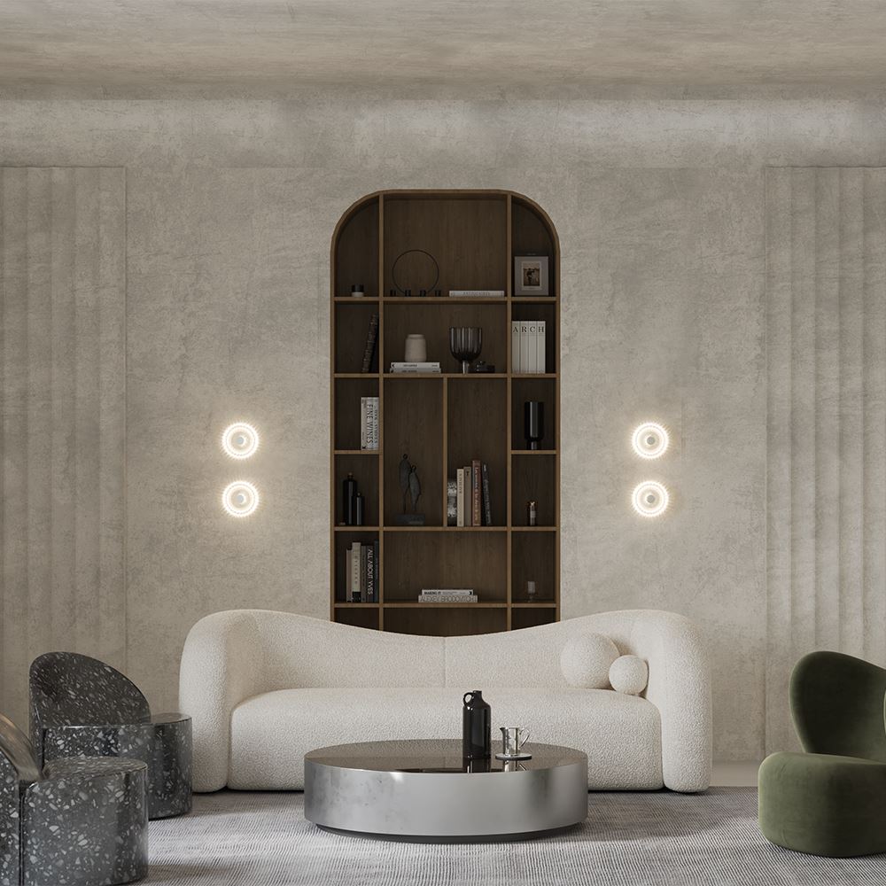 Этнические силуэты традиционных африканских украшений, наделенных тайным смыслом, легли в основу дизайна серии Amulet. Символика оберега, приносящего удачу и являющегося защитником дома, органично укладывается в канву современных интерьерных трендов, что подтверждают несколько международных премий. Акцентные декоративные элементы в виде рельефных сфер выполнены из литого стекла. Декор добавляет композиции визуальной легкости. Источник света – светодиодная лента – заключена в матовый акриловый рассеиватель. Такое решение обеспечивает мягкое освещение, а температура 4000К, близкая к дневному свету, идеальна для повседневной жизни. Серия включает подвесные светильники, высота которых регулируется при помощи тросов, а также настольную лампу.