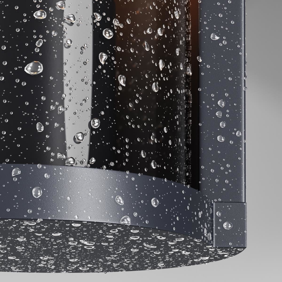 Алюминиевый корпус, цвет - графит. Рассеиватель из прочного тонированного пластика в 2-х формах: квадратный и округлый. Идеален для экстерьеров в стиле лофт и освещения входных зон. Источник света - лампа с цоколем Е27. Степень защиты - IP65.