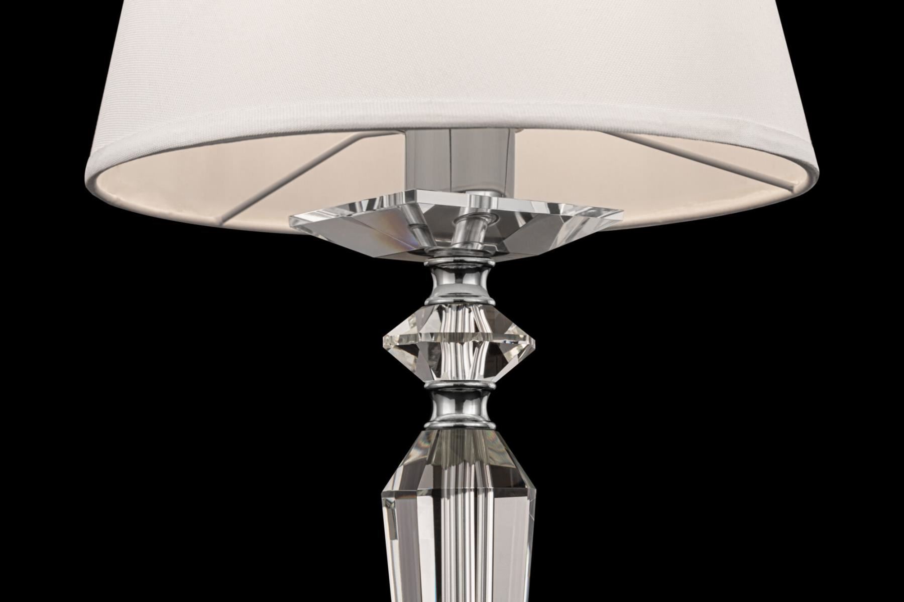 Светильники серии обладают легким, современным обликом, сочетающим в себе элегантность классики и линейность конструктивизма. Арматура изготовлена из металла с гальваническим покрытием цвета никель. Массивные трапециевидные элементы из прозрачного стекла украшают основание и рожки. Абажуры из белого льна, нанесенного на ПВХ, мягко рассеивают свет ламп. Высоту люстр можно регулировать, изменяя длину цепи.