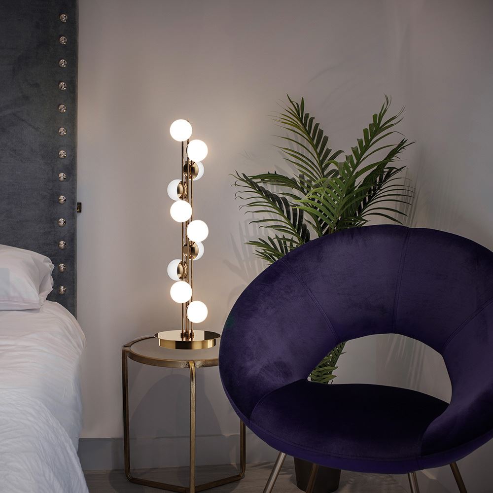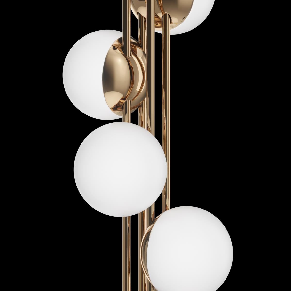 Широкая окружность, обрамленная «молекулами» света,обеспечивает максимально равномерное и яркое освещениепространства. «Атомный» или «молекулярный» дизайн,отражающий естество и природную сущность каждого предмета,не теряет актуальности и позволяет выгодно расставлять акцентыв интерьере. Одна из характерных черт подобных светильников—невесомость конструкции. За счет тонких, практически невидимыхтросов, которые регулируются по высоте, создается ощущение, что люстра парит в воздухе. Металлическая золотая арматура и матово-белые миниатюрные плафоны с легкостью дополнят любую палитру, а представленные в коллекции подвесная люстра и бра станут готовым ансамблем для освещения гостиной, спальни, прихожей.