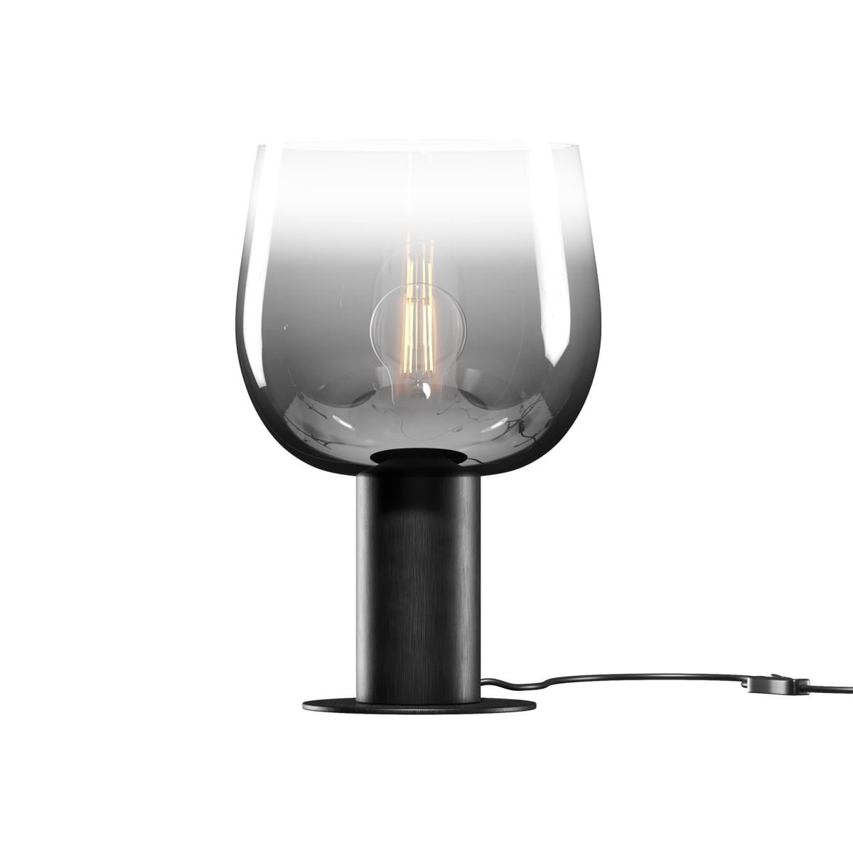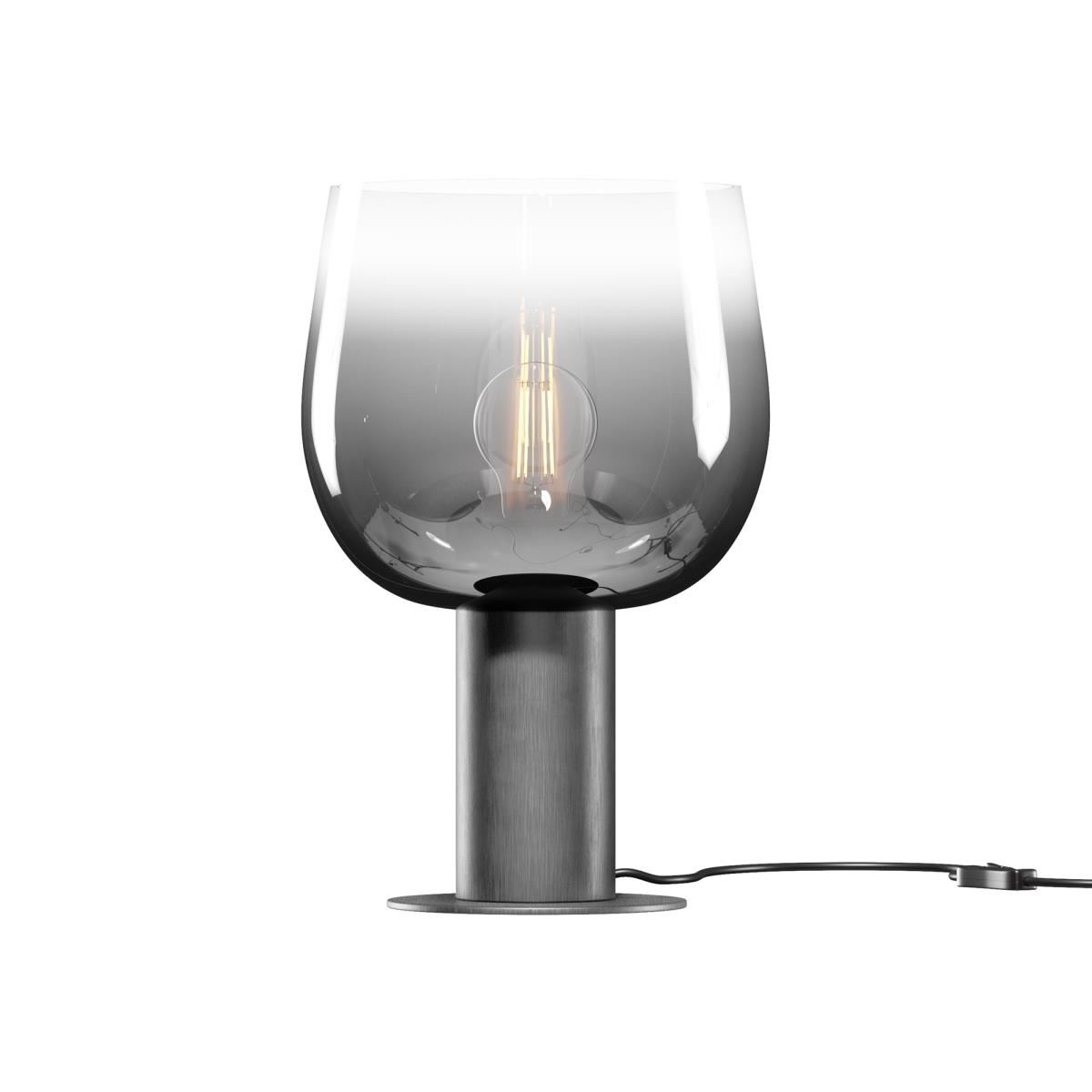 Цветовая гамма: дымчато-серый или насыщенно-янтарный цвет стекла в сочетании с черной или золотой арматурой. В серии есть модели светильников со сменным источником света с цоколем Е27 (каскадная композиция, потолочный и настольные светильники) и LED-источником (одинарные подвесные светильники). Температура свечения LED – 3000 К, угол рассеивания — 120 градусов. Плафоны каскадной композиции плафоны разных размеров и оттенков, установленные на одно основание. Оригинальный декор — актуальный вариант современной классики.