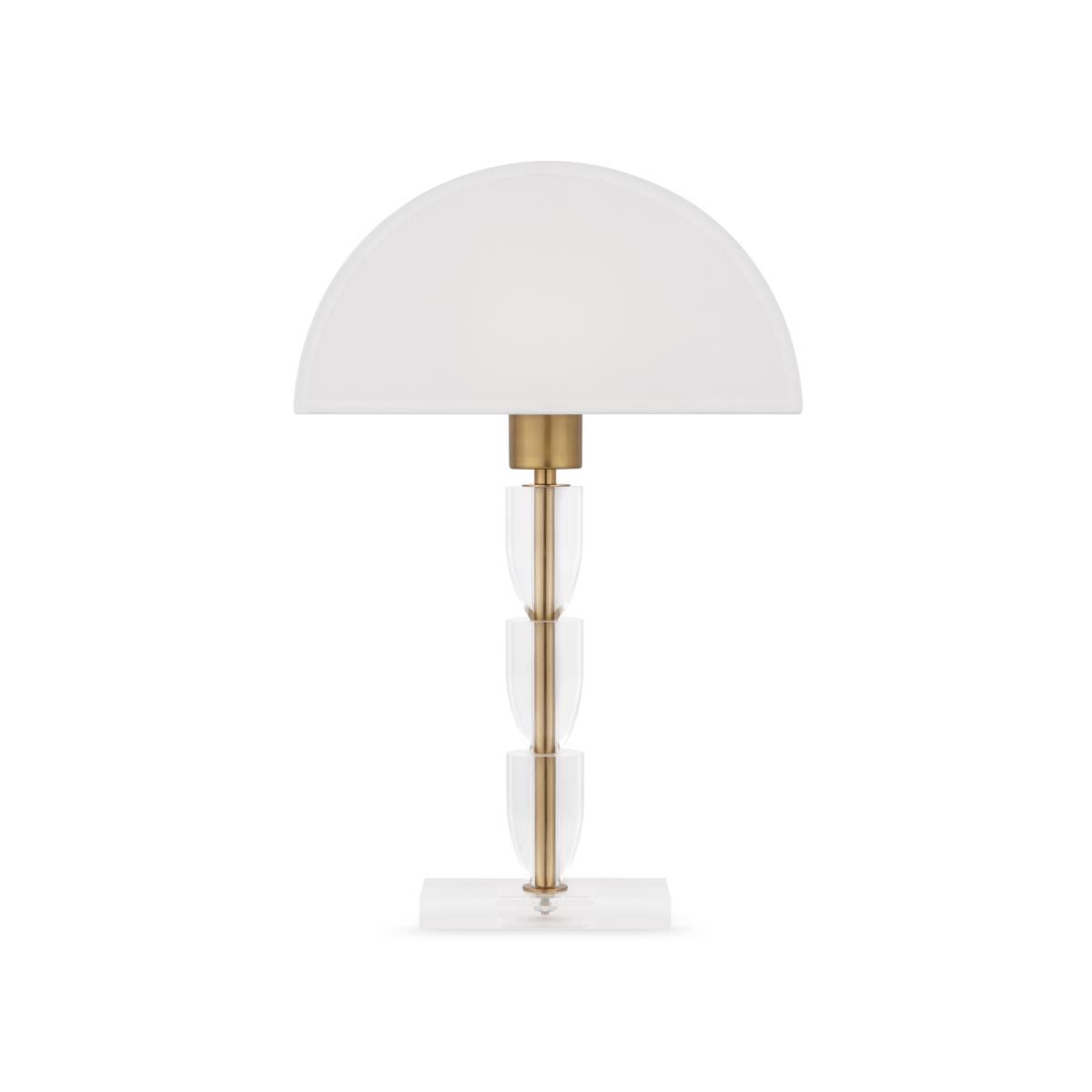 Арматура – металл. Оттенки – хром, латунь. Хлопковый абажур в белом цвете. Прозрачный акриловый декор в основании. Эстетика Баухауса, трендовая форма абажура. Цоколь Е14