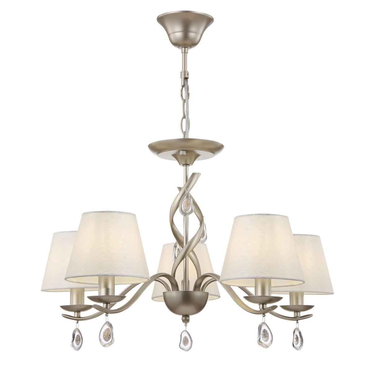 Элегантный дизайн и плавные линии светильников Monique делают их прекрасным решением для интерьеров в классическом стиле. Арматура из металла цвета матового золота декорирована подвесками из стекла с позолоченным рисунком. Абажуры выполнены из текстиля светло-кремового цвета. Благодаря благородному цвету арматуры и светлым абажурам светильники Monique выглядят воздушными и легкими. Большой ассортимент серии (две люстры на 7 и 5 рожков, подвесной светильник, торшер, настольная лампа и бра) позволит подобрать целый ансамбль для освещения помещения в одном стиле.