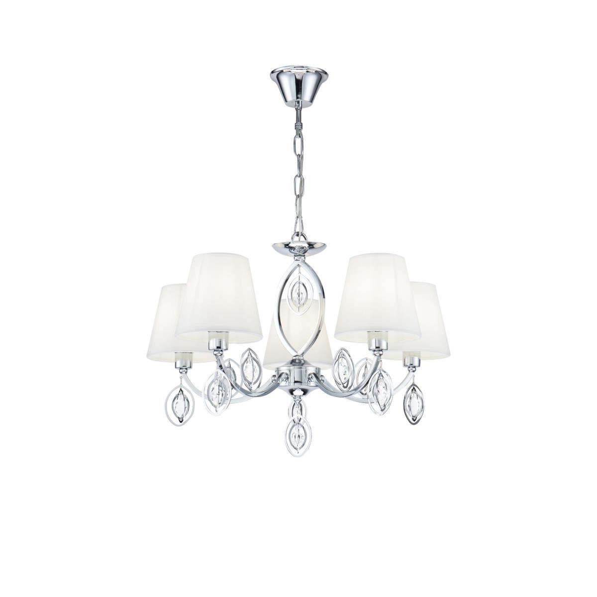 Серия Luciana выполнена в классическом стиле. Благодаря своей светлой цветовой гамме светильники впишутся практически в любой интерьер. Арматура сделана из металла цвета хром, а абажуры - из белой ткани. Дизайн светильников дополнен декоративными подвесками из металла и хрусталя овальной формы.
