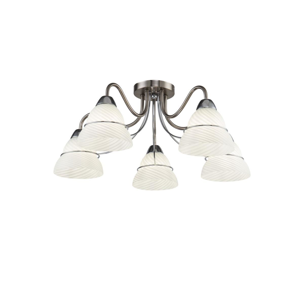 Серия светильников в современном стиле. Арматура сделана из металла, а плафоны - из белого матового стекла со спиральным рельефом. Каждый плафон украшен металлической полоской в тон арматуры.