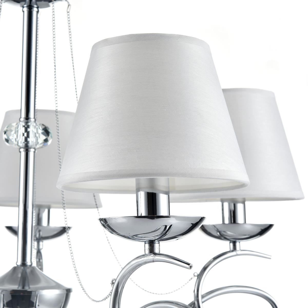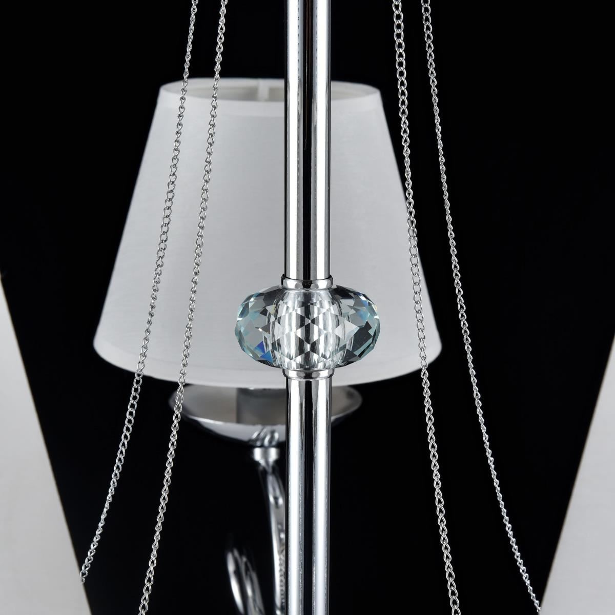 Светлые абажуры из ткани сочетаются с металлической арматурой и декоративными кристаллами на арматуре и подвесках. Светильники Haley подходят для интерьеров в классическом стиле, например, для гостиных и спален.