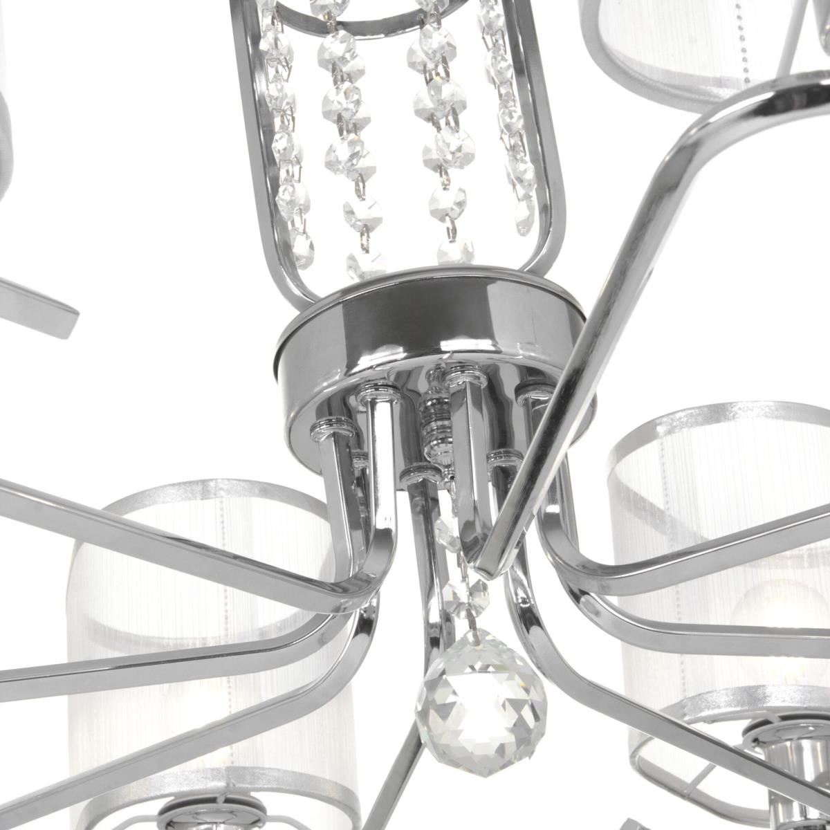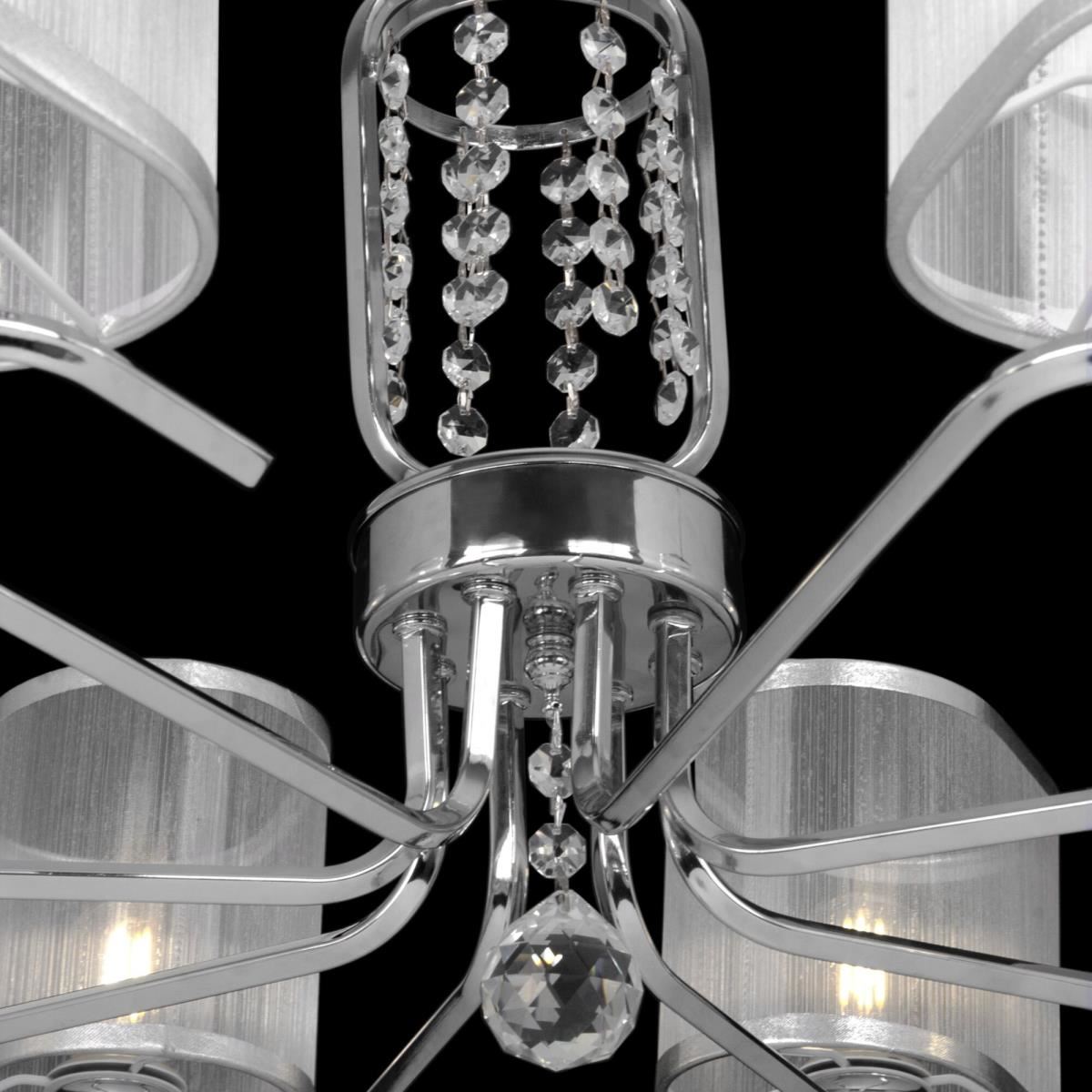 Современные и изящные светильники серии Elin наполнены светом и воздухом. Арматура сделана из металла и украшена декоративными подвесками. Абажуры прямоугольной формы выполнены из полупрозрачной серебристой органзы. Благодаря полупрозрачной органзе свет от ламп отражается и играет в гранях подвесок и на блестящей арматуре. Все это делает светильники настоящим украшением любого интерьера! Ассортимент серии представлен люстрами на 8, 5 и 3 рожка, настольной лампой и бра.