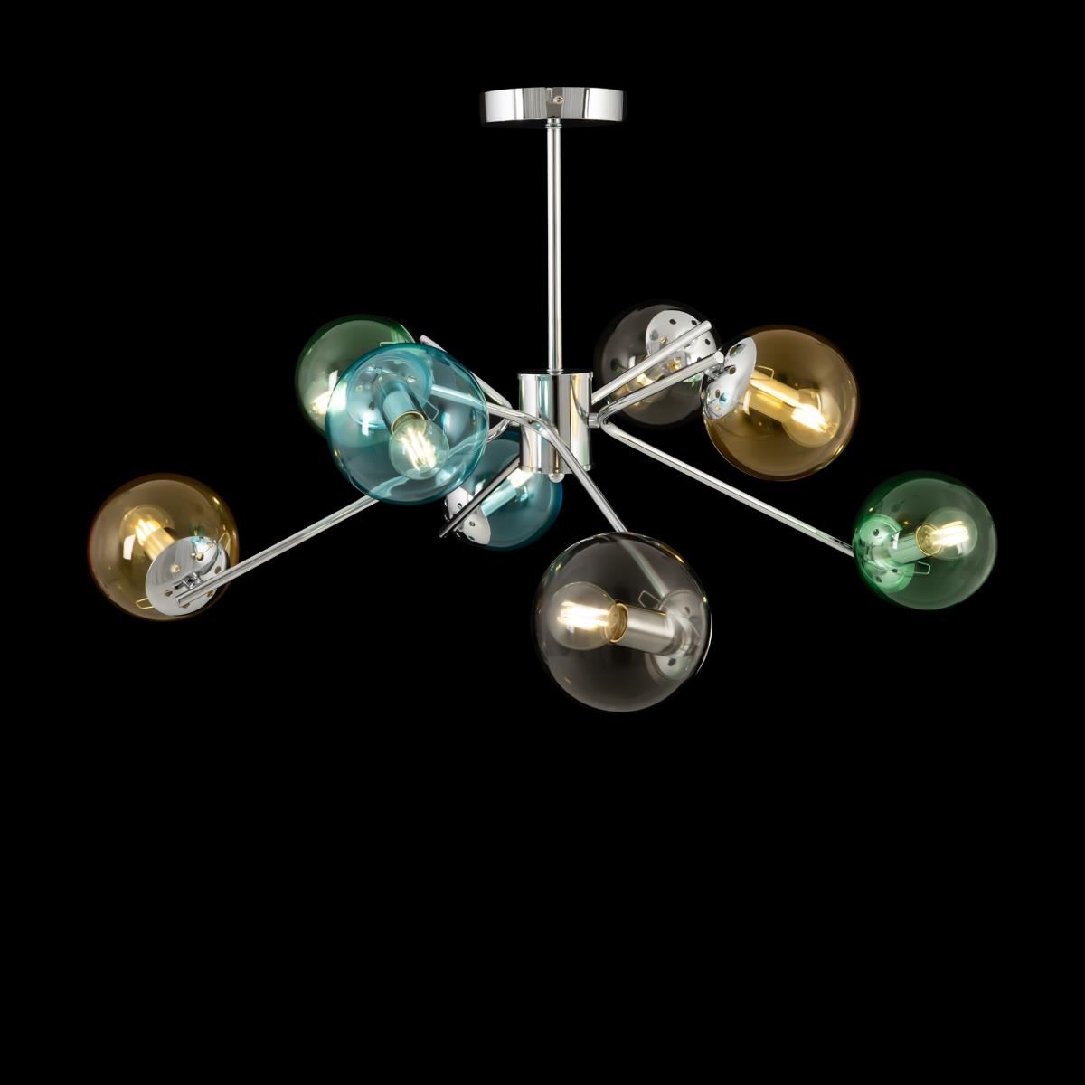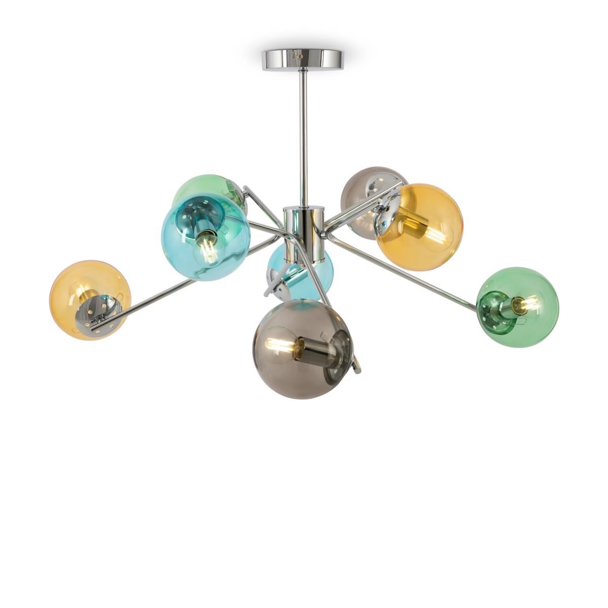 Яркая и задорная серия Nancy прекрасно подойдет для детской комнаты, станет ярким акцентом в дизайне современной кухни, а также в зале кафе кафе или ресторана. Круглые плафоны из прозрачного цветного стекла фиксируются на пружинах. Серия включает 3 потолочные люстры на 6, 8 и 10 рожков и бра. Плафон на бра выполнен в светло-сером цвете, что позволяет комбинировать его со всеми люстрами серии, а также другими изделиями бренда.