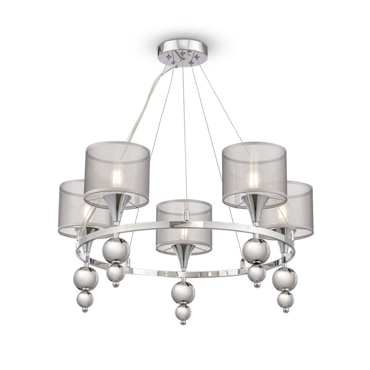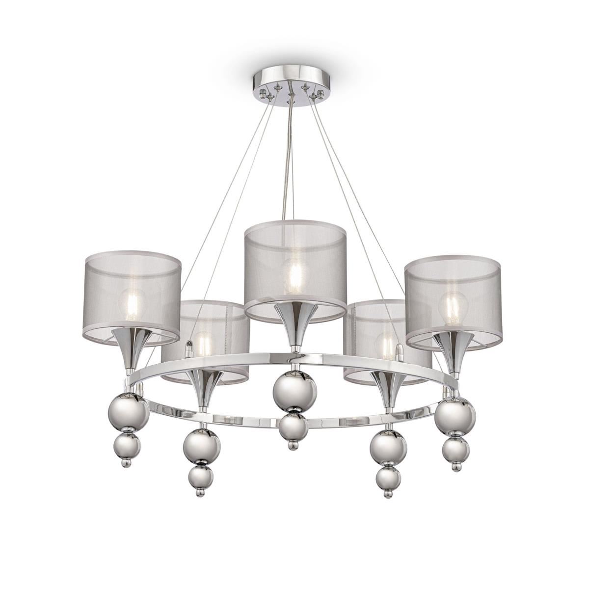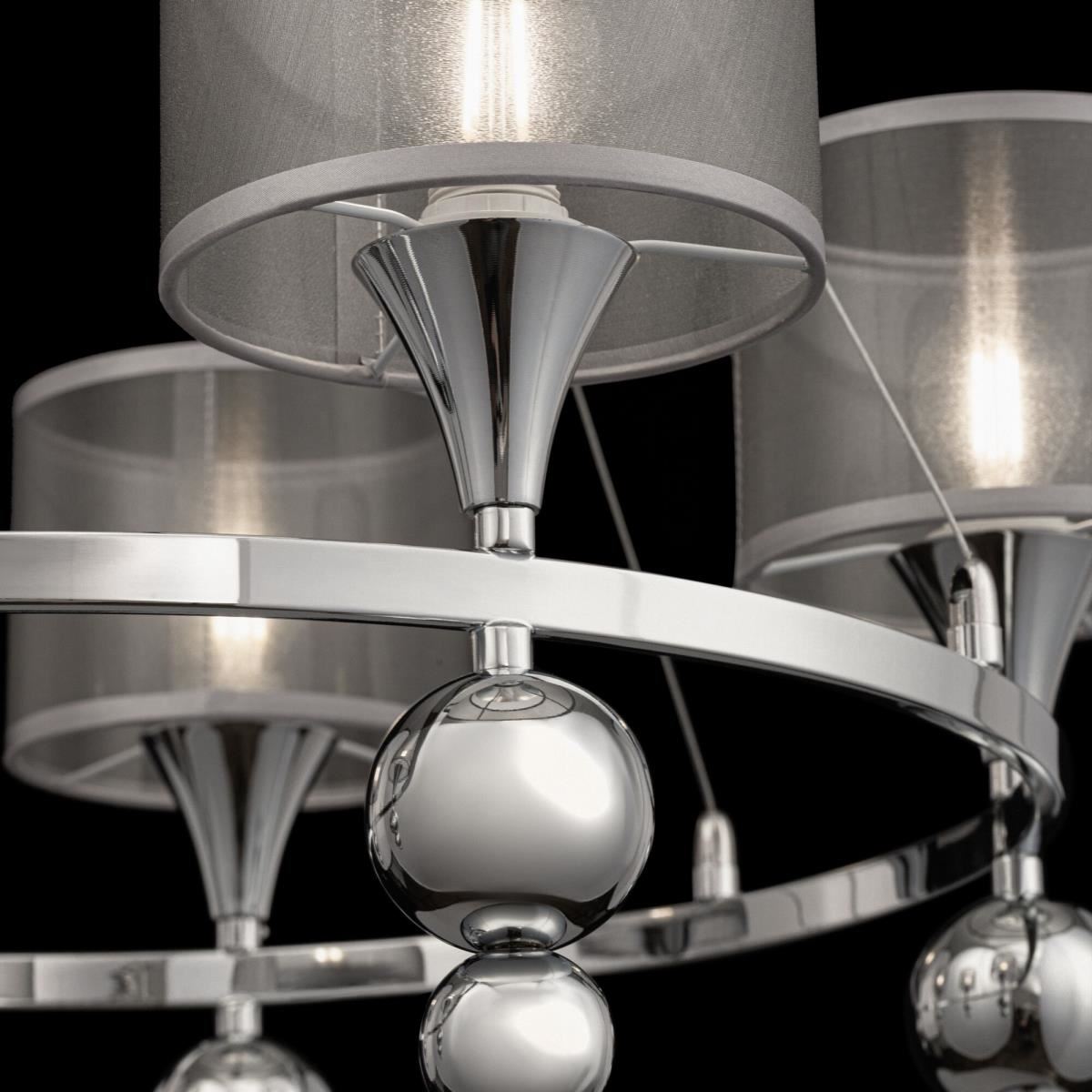 Округлые формы лежат в основе дизайна серии Lauren. Традиционные рожки заменяет круглое основание, к которому крепятся абажуры цилиндрической формы из серебристой органзы. Декоративные элементы в виде хромированных шаров дополняют современный и стильный дизайн этой серии. Высота люстр регулируется тросами. Широкая линейка включает 2 люстры на 5 и 8 рожков, одиночный подвес, настольную лампу, торшер и бра.