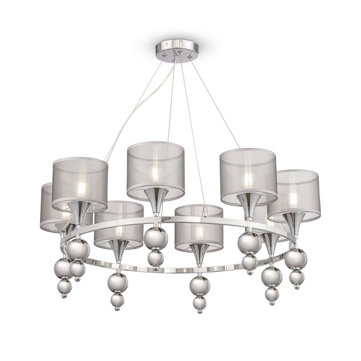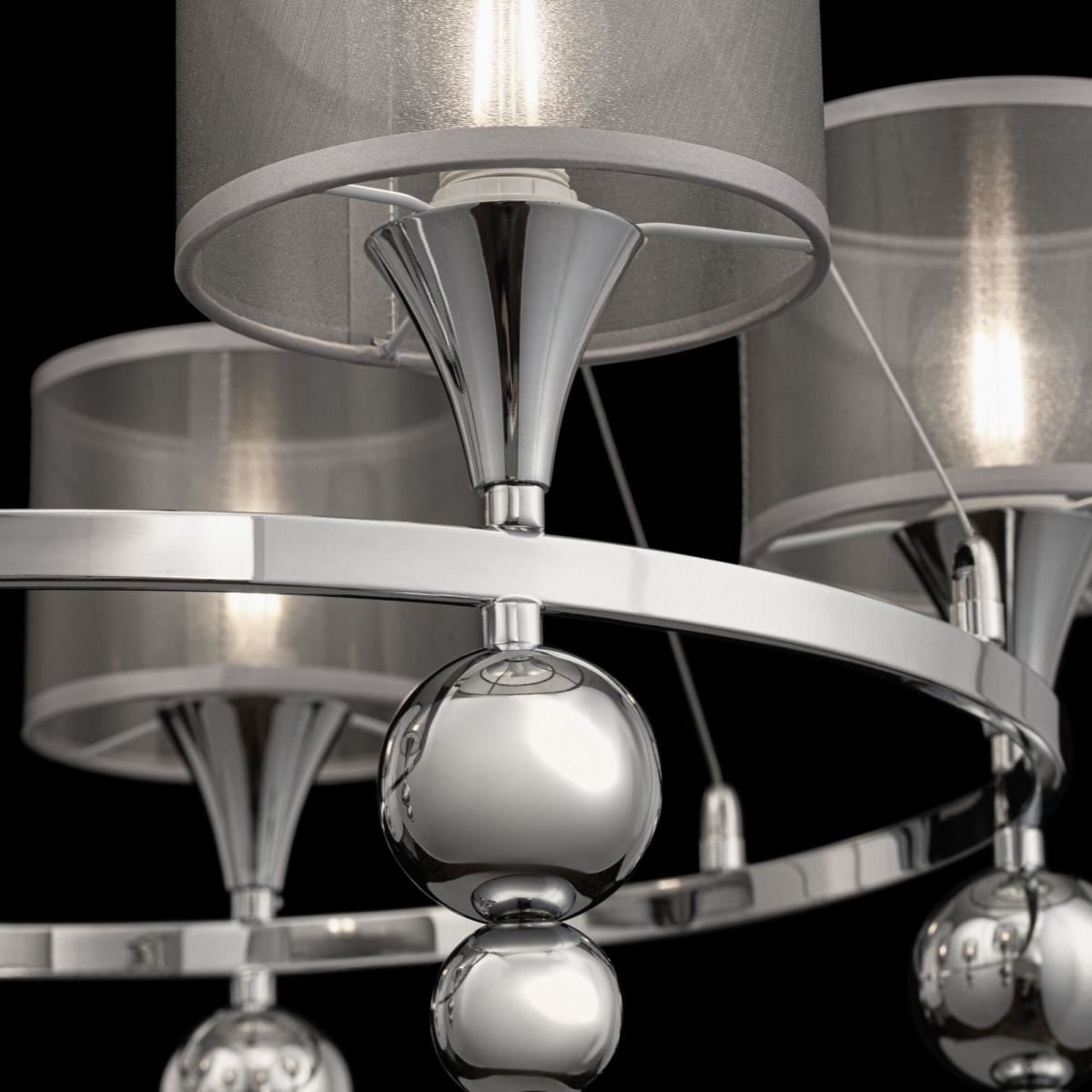 Округлые формы лежат в основе дизайна серии Lauren. Традиционные рожки заменяет круглое основание, к которому крепятся абажуры цилиндрической формы из серебристой органзы. Декоративные элементы в виде хромированных шаров дополняют современный и стильный дизайн этой серии. Высота люстр регулируется тросами. Широкая линейка включает 2 люстры на 5 и 8 рожков, одиночный подвес, настольную лампу, торшер и бра.