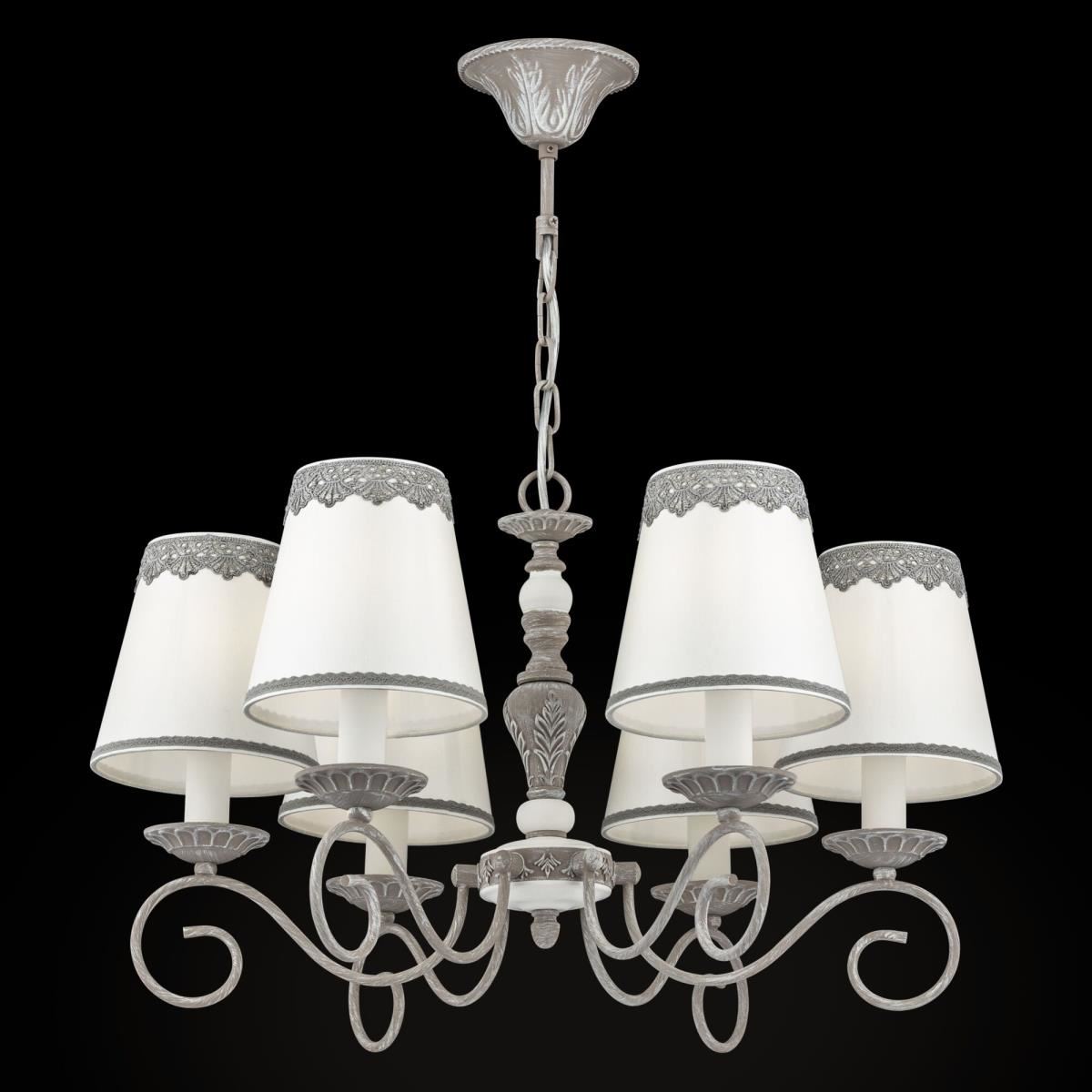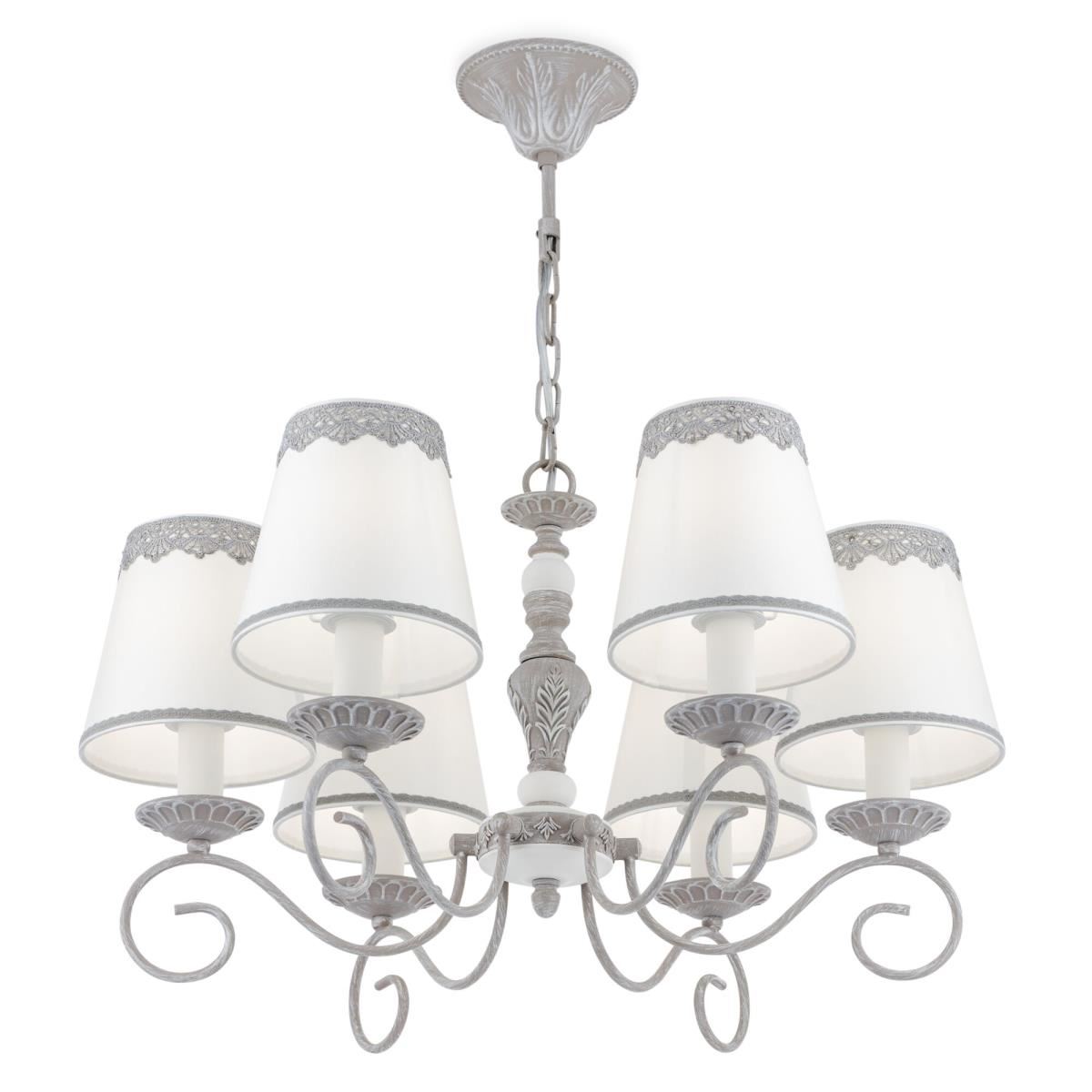 Серия светильников Bouquet создана для тех, кто стремится привнести в интерьер нотки деревенского шарма, сохранив при этом изящность и благородство интерьера. Арматура светильников сделана из металла и выкрашена в серый цвет. Краска намеренно положена неравномерно, а с имитацией естественных потертостей. Абажуры из хлопка на ПВХ с кружевными бордюрами. Светильники серии дополнены декоративными деталями в виде рамки для фотографий у настальной лампы и фигурок птиц у бра и подвесного светильника.