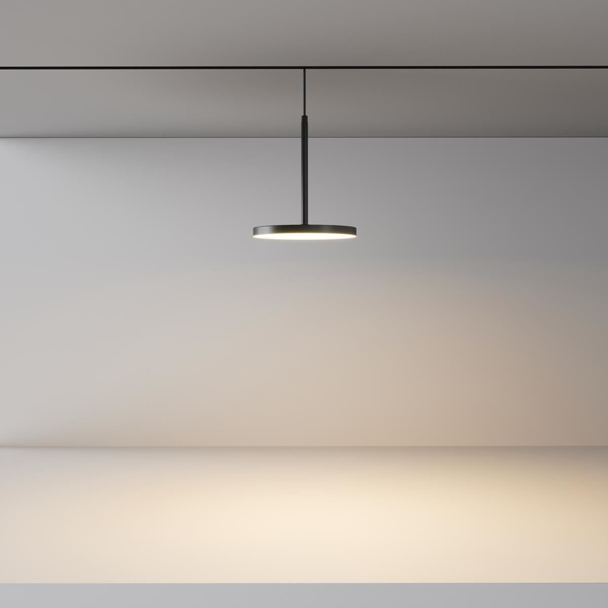 Алюминиевый корпус в черном цвете. Декоративные трековые подвесные светильники и на жестком основании в форме диска создадут широкий угол света и идеальны для общего равномерного освещения. Матовый опаловый рассеиватель выполнен из стекла и исключает слепящий эффект. LED-источник света. Поворотный механизм светильника на жестком основании позволяет менять направление светового потока в двух плоскостях: вокруг своей оси с поворотом на 355° и в горизонтальной плоскости с наклоном на 180°. Цветовая температура 3000K, 4000К, а также умные светильники с регулировкой цветовой температуры от 3000K до 6000K и диммированием по протоколу Bluetooth Mesh.
