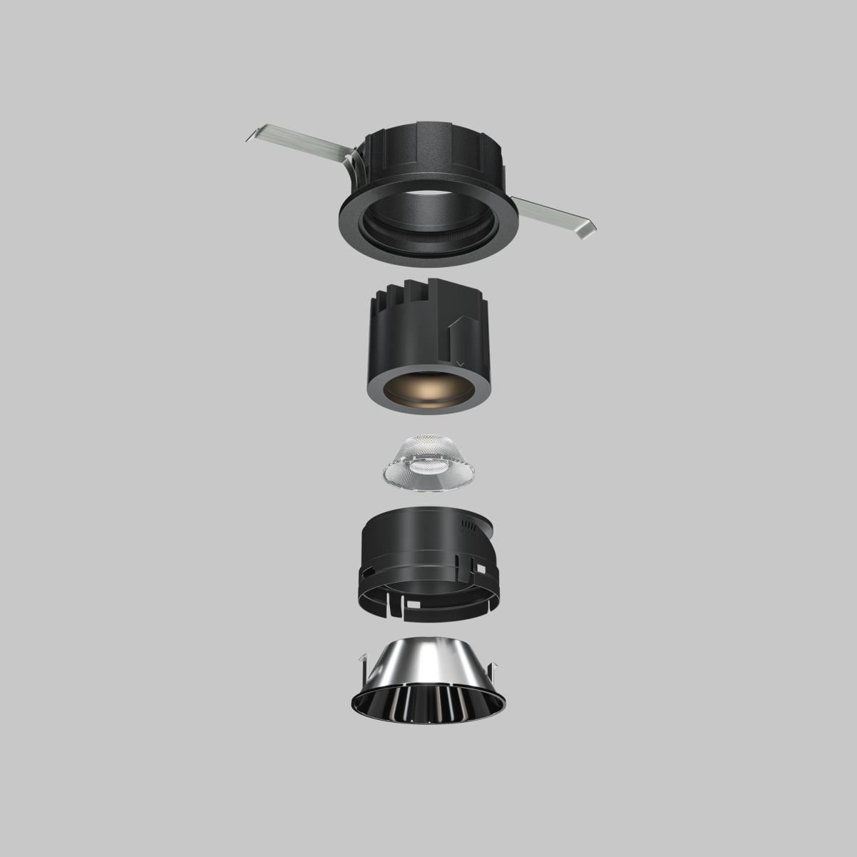 Встроенный утопленный источник света LED, обеспечивает мягкое рассеивание света. Поворотный механизм, позволит организовать акцентную подсветку зон и предметов интерьера. Сменные линзы и фильтры позволят изменить стандартный угол 36° на выбор от 15°-50° и сделать освещение более комфортным. Сменные рефлекторы в ассортименте, позволят подобрать цветовую гамму для большинства трендовых интерьеров.