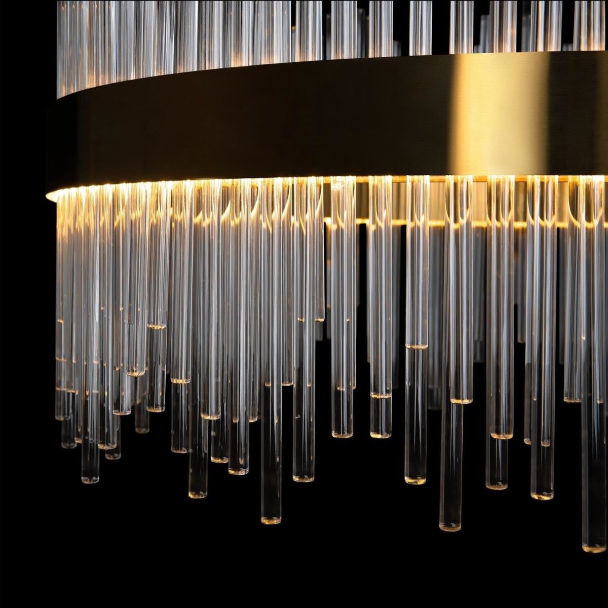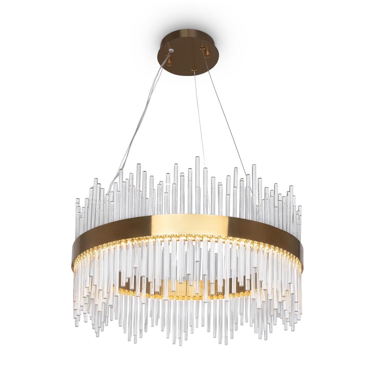 Современный дизайн часто вдохновляется природными формами, а серия Chalice повторяет одну из них, формируя облик струящегося водопада света. Симметрично расположенный декор создает динамичный рисунок переливающихся волн, а лучи света, преломляясь в стеклянной поверхности, подчеркивают иллюзию движения. Металлическая арматура окрашена в золотой оттенок, который легко интегрируется как в современные, так и в классические обстановки. Визуально незаметные тросы поддерживают идею невесомости композиции, а LED-источники света обеспечивают яркое освещение. Три подвесные люстры различного диаметра и мощности позволяют выбрать оптимальный вариант с учетом размеров помещения. Серия займет достойное место в гостиных, помещениях HoReCa, выполненных в стиле ар-деко, модерн, неоклассика, эклектика.