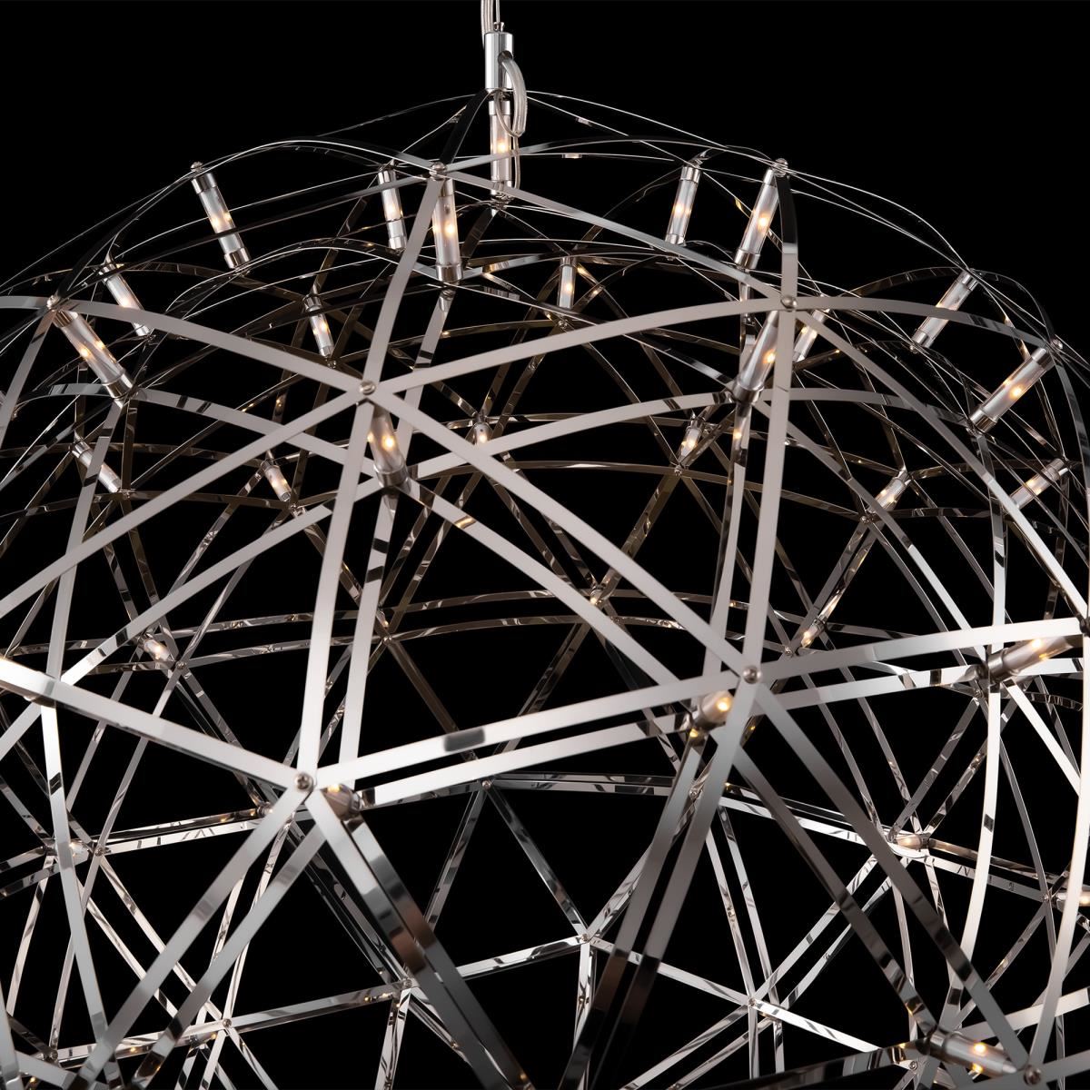 Серия Amber представляет воздушные светильники-сферы, выполненные в трендовом стиле хай-тек. Хромированная металлическая арматура и плафон, сотканный из переплетающихся лент, создают запоминающийся современный образ. Встроенные светодиоды экономят электроэнергию и красиво подсвечивают сферу. В выключенном состоянии светильник выглядит как абстрактное произведение искусства и является полноправной частью декоративного ансамбля интерьера. Серию составляют подвесы различного диаметра – их можно использовать по отдельности, а можно комбинировать в группы. Для обстановки в стиле хай-тек, минимализм, лофт, помещений кафе и ресторанов светильник станет идеальным решением.