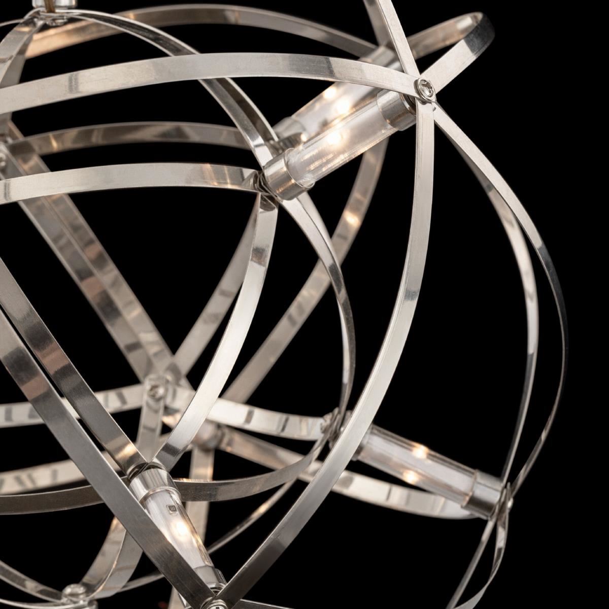 Серия Amber представляет воздушные светильники-сферы, выполненные в трендовом стиле хай-тек. Хромированная металлическая арматура и плафон, сотканный из переплетающихся лент, создают запоминающийся современный образ. Встроенные светодиоды экономят электроэнергию и красиво подсвечивают сферу. В выключенном состоянии светильник выглядит как абстрактное произведение искусства и является полноправной частью декоративного ансамбля интерьера. Серию составляют подвесы различного диаметра – их можно использовать по отдельности, а можно комбинировать в группы. Для обстановки в стиле хай-тек, минимализм, лофт, помещений кафе и ресторанов светильник станет идеальным решением.