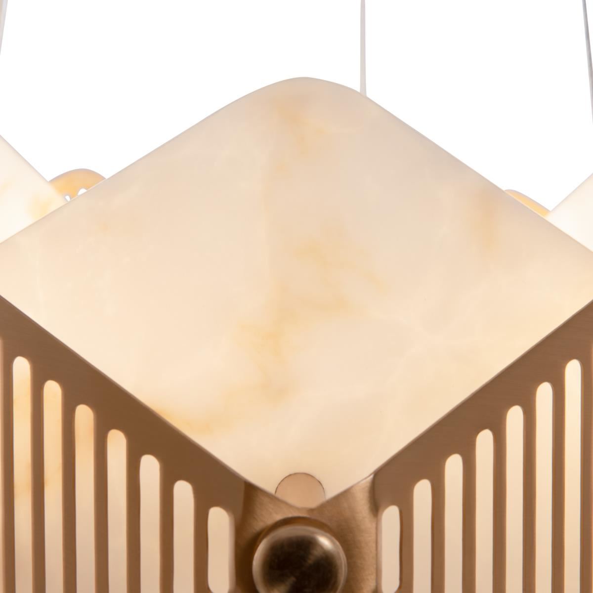 Светильник Libra с текстурой, имитирующей натуральный мрамор, станет выразительным акцентом в интерьере. Арматура выполнена из металла и окрашена в цвет латуни. Эффектный декор модели сочетает два ряда пластин геометрической формы. Первый – с мрамором золотой карары, второй – в виде металлических решетчатых ромбов. Актуальная комбинация фактур раскрывает тренд на дизайн ощущений и помогает создать физически и эмоционально комфортную обстановку. Люстра легко адаптируется как в классическом, так и в современном пространстве: от неоклассики до скандинавского стиля. За счет четкой геометрии и отсутствия центрального стержня модель выглядит визуально легкой и невесомой, она удачно дополнит обстановку гостиной, спальни, столовой или помещений HoReCa.