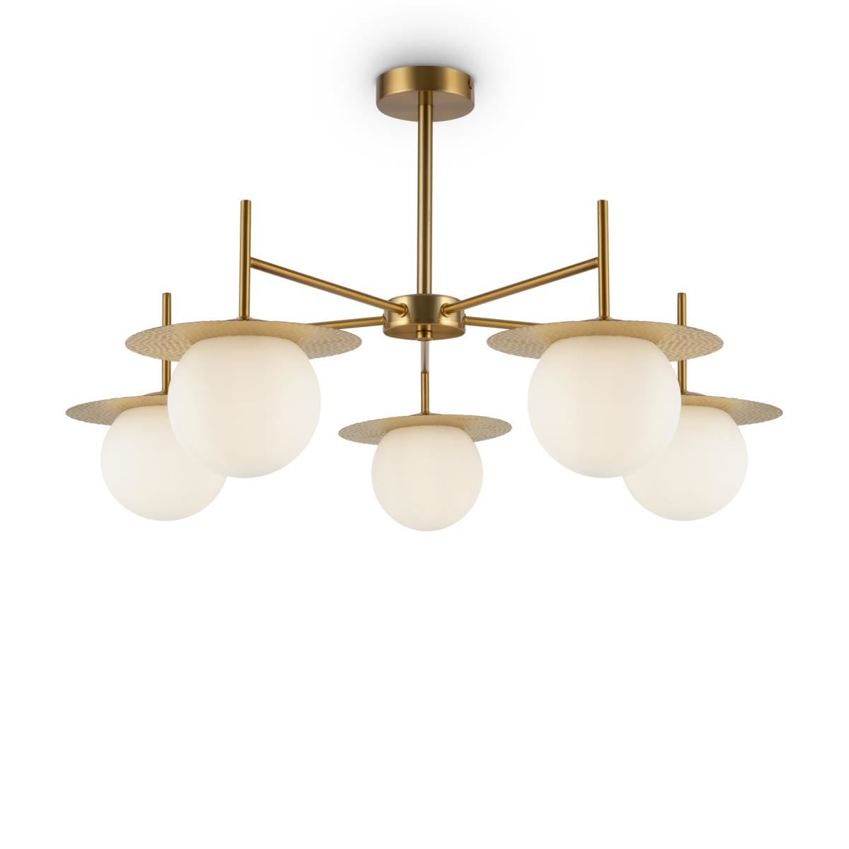 Дизайн серии Camelia объединил трендовые фактуры и силуэты. Металлическая арматура окрашена в цвет латуни. Благородный оттенок выгодно подчеркнут белыми плафонами из матового стекла. Их округлая сферическая форма – актуальный тренд в современном дизайне. Оригинальное решение – плоские розетки в тон арматуре. Рельефная поверхность с эффектом чеканки создает модный микс фактур. Серия включает потолочные люстры на 5, 8 плафонов и бра, что позволяет организовать как основное, так и зональное освещение. Компактные габариты светильников актуальны, в том числе, для невысоких потолков. Серия займет достойное место в интерьерах современных спален и гостиных, оформленных в стиле эклектика, mid-century modern, минимализм.