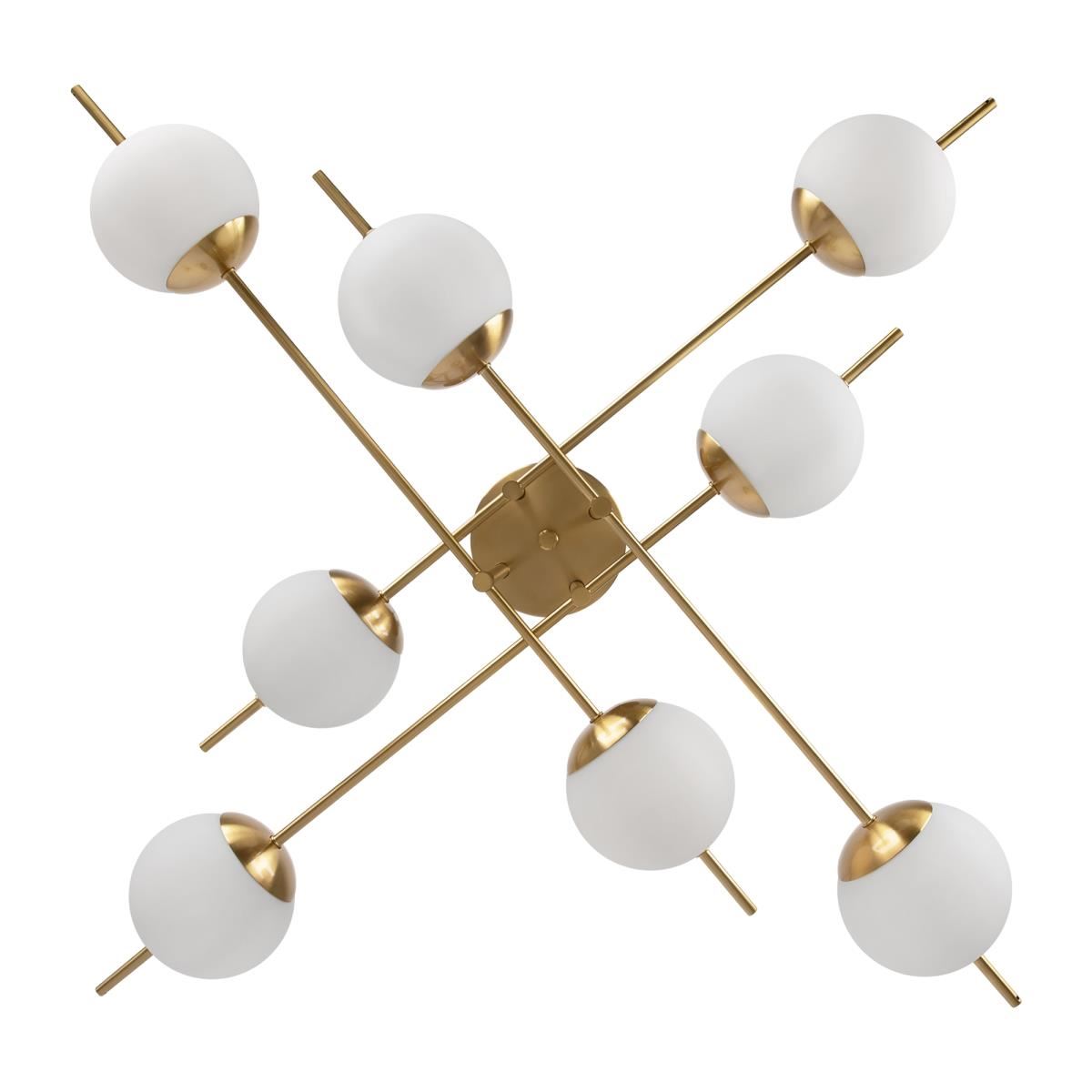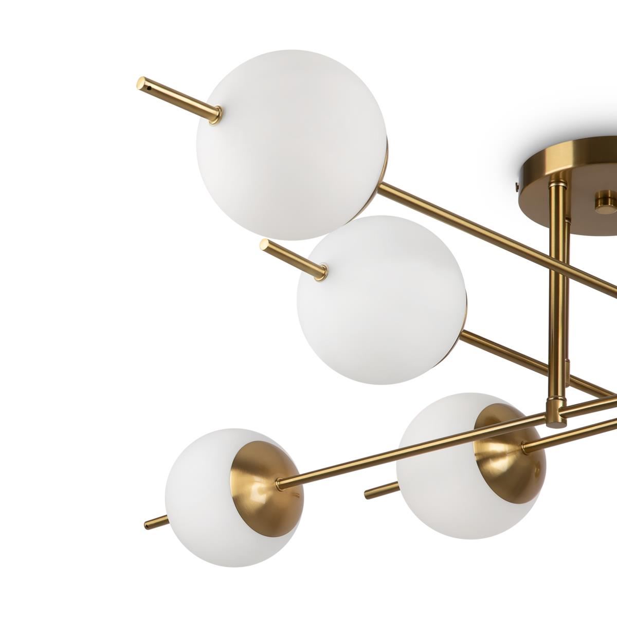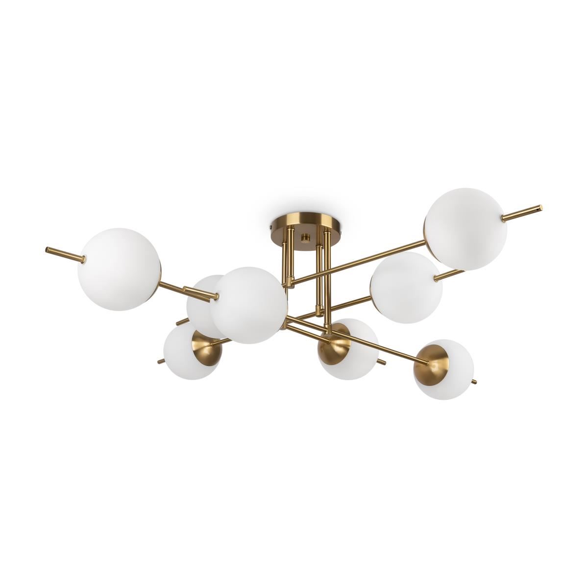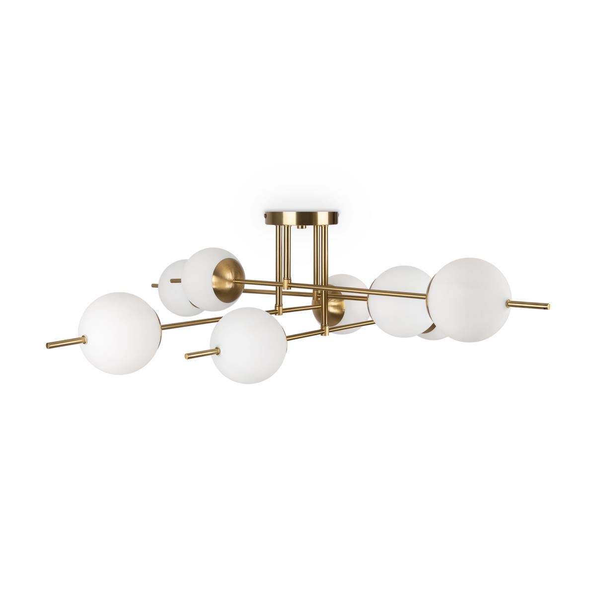 Эстетика конструктивизма, с характерной для неё геометрией и лаконичностью, отчетливо прослеживается в дизайне серии Damask. Металлическая арматура выполнена в благородном оттенке латуни. Её четкие линии, пронизывающие плафоны, привлекают внимание и создают эффектный визуальный образ. Строгую геометрию арматуры разбавляют округлые шаровидные плафоны, выполненные из матового белого стекла. В серии – потолочные люстры на 6, 8 ламп и бра для комплексной подсветки интерьера. Оригинальный дизайн легко адаптируется в современном пространстве и сможет подчеркнуть достоинства обстановки, оформленной в стиле mid-century modern, конструктивизм, минимализм, техно.