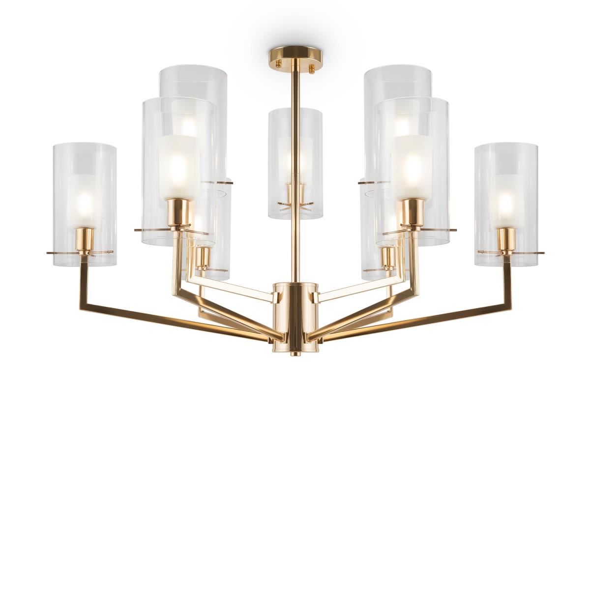 Изюминка серии Felicity – оригинальный дизайн, объединивший элегантную неоклассику и лаконичную геометрию. Визуально легкий образ создается благодаря воздушным плафонам. Они выполнены из двойного стекла – матового внутри и прозрачного снаружи. Такое решение обеспечивает мягкое, слегка рассеянное и комфортное для зрения освещение. Металлическая арматура окрашена в цвет французского золота – оттенок, актуальный как для классических, так и для современных интерьерных решений. Симметричное расположение геометричных рожков подчеркивает утонченность и строгость композиции. Элегантный дизайн актуален для современных, неоклассических и эклектичных интерьеров, позволяет расставить акценты, не перегружая обстановку. Серия включает люстры на 6, 8, 9 ламп и бра – можно организовать комплексные сценарии освещения в единой стилистике.