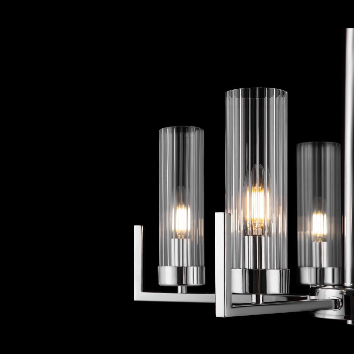 Дизайн на стыке классики и современности, выдержанная эстетика американского стиля в лаконичном исполнении. Adeline – выбор тех, кто ценит традиции. Арматура из металла представлена в оттенках хрома и латуни. Её строгий силуэт подчеркнут минималистичными плафонами-цилиндрами. Граненое стекло с ребристым рисунком – актуальный тренд, создающий модный контраст фактур. Направленные вверх источники света равномерно распределяют световой поток по комнате и визуально приподнимают потолки. В серию входят люстры на 5, 8 ламп и бра – вы можете сформировать комплексный световой сценарий с общим и зональным освещением. Элегантный дизайн актуален для интерьеров в стиле неоклассика, ар-деко, модерн.