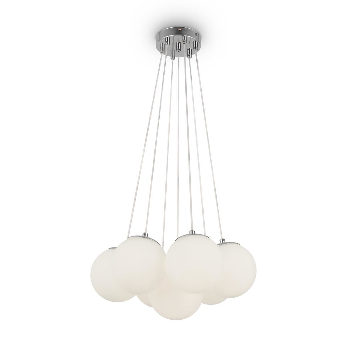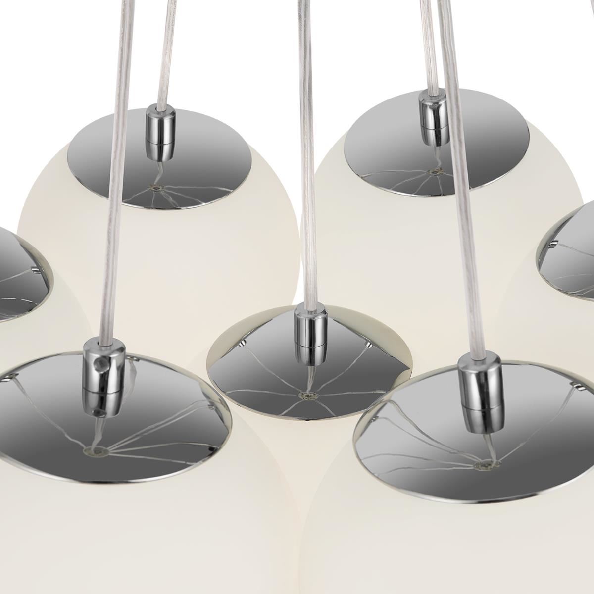 Воздушное облако света создаст праздничную и непринужденную атмосферу, добавит интерьеру легкости и станет стильным акцентом. Вдохновение серии – культовые светильники-пузыри с плафонами, собранными в «гроздья». Лаконичная металлическая арматура представлена в оттенках хрома и латуни. Визуально незаметные подвесы обеспечивают трендовый эффект парения: плафоны-сферы словно замирают в воздухе. Выполненные из матового стекла, они мягко рассеивают световой поток. Серия включает модели разного размера на 6, 7, 13 и 19 ламп. Группу из нескольких светильников удобно использовать в одном помещении, создавая световые композиции в единой стилистике. Невесомый дизайн актуален для жилых и общественных пространств, оформленных в стиле сканди, фьюжн, контемпорари, mid-century modern. _x000D_