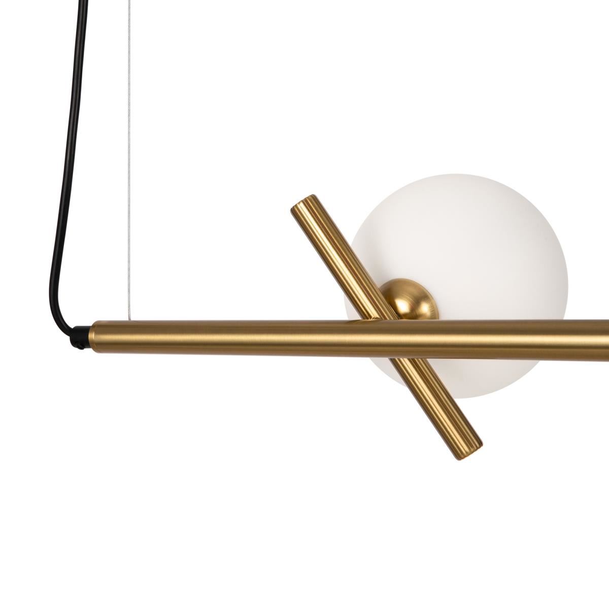 Материал арматуры — рифленый металл, цвет — латунь. Плафоны-сферы из белого матового стекла для мягкого заливающего света. Воздушный образ плафонов, строгие тонкие линии арматуры придадут интерьеру изящество и легкость. Высота подвесов регулируется. Источник света — лампы с цоколем G9.