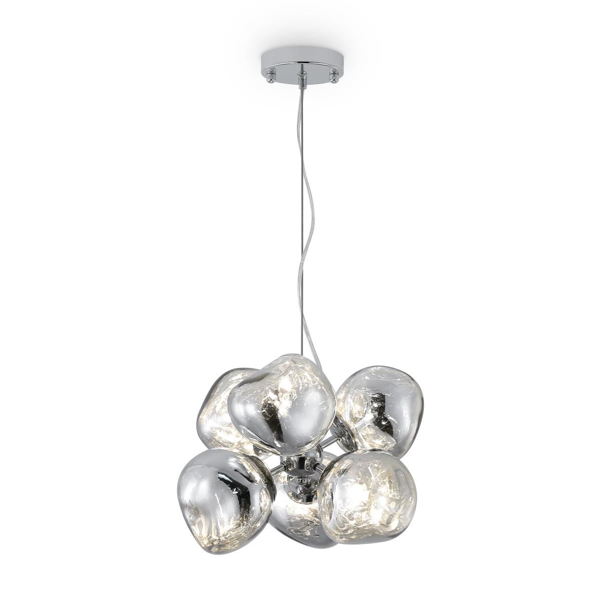 Арматура — металл, цвет — хром. Шарообразные плафоны с зеркальным эффектом и переливами. Материал - стекло с серебристым напылением. Источник света — лампа с цоколем — G9.