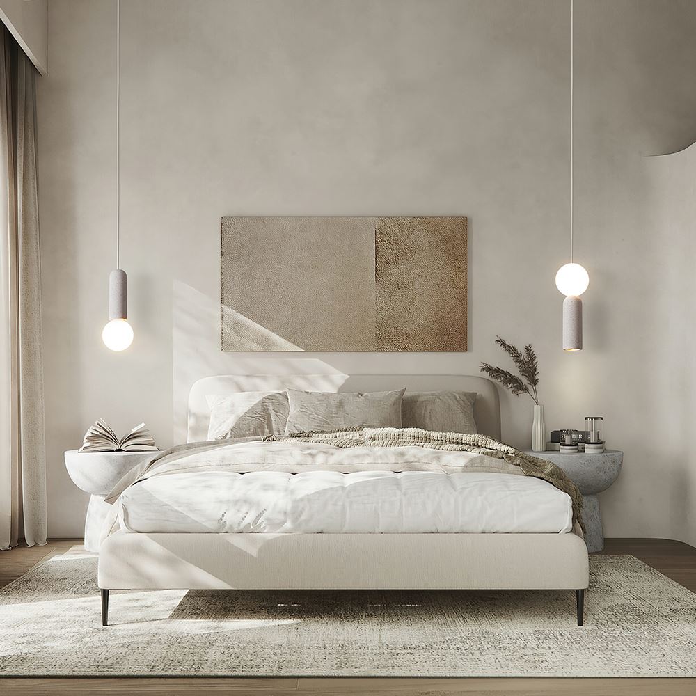 Материал арматуры — металл белого цвета, плафоны выполнены из светлого микроцемента. Светильники представлены в двух версиях: со встроенным LED-источником освещения с цветовой температурой 2700К, а также с цоколем E27. Минималистичный дизайн в белом цвете идеально подходит для современных интерьеров в стиле лофт или скандинавском стиле.