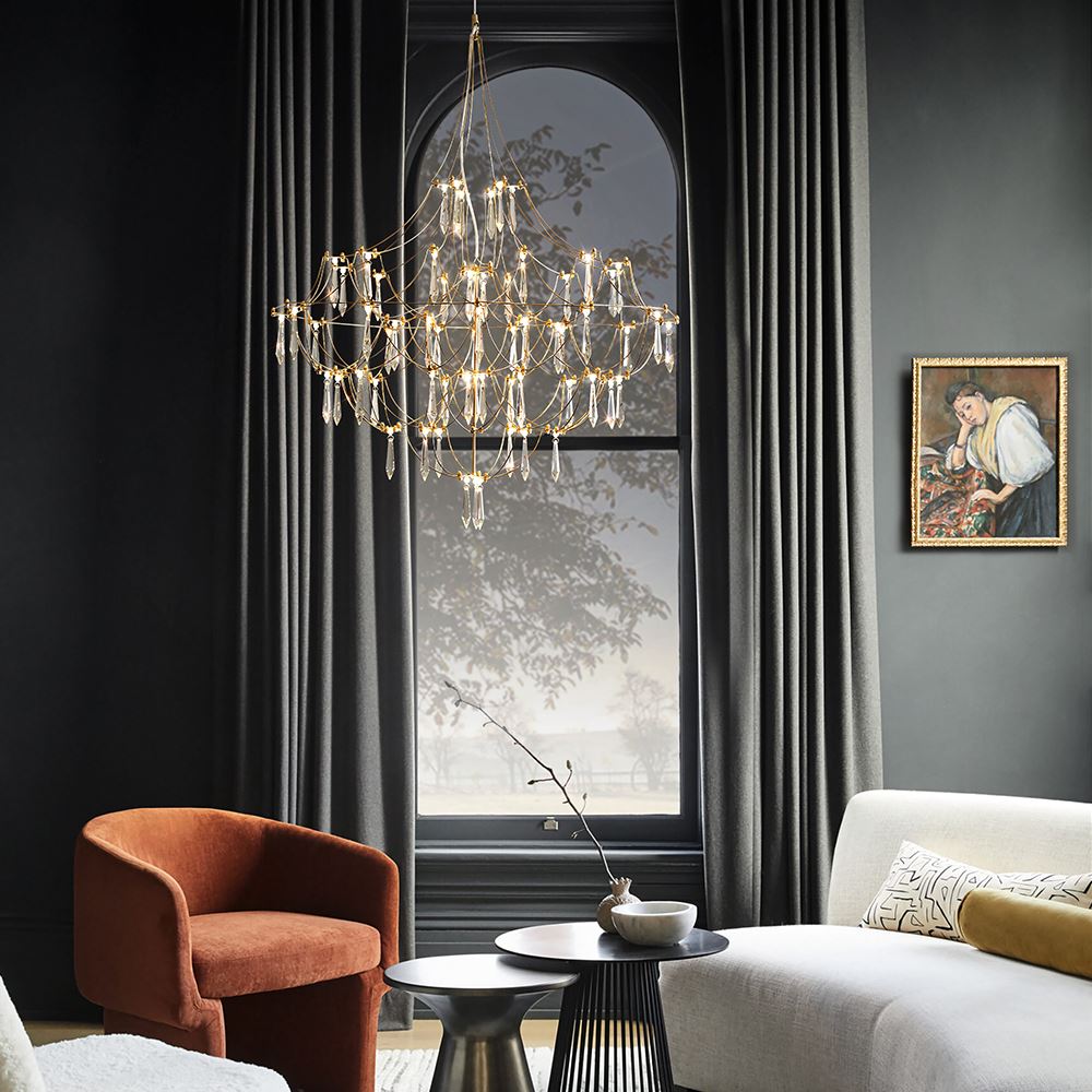 Арматура - хромированная нержавеющая сталь. В соединениях арматуры Led источник света и декоративные элементы из хрусталя в виде капелек. Цветовая температура 3000К.
