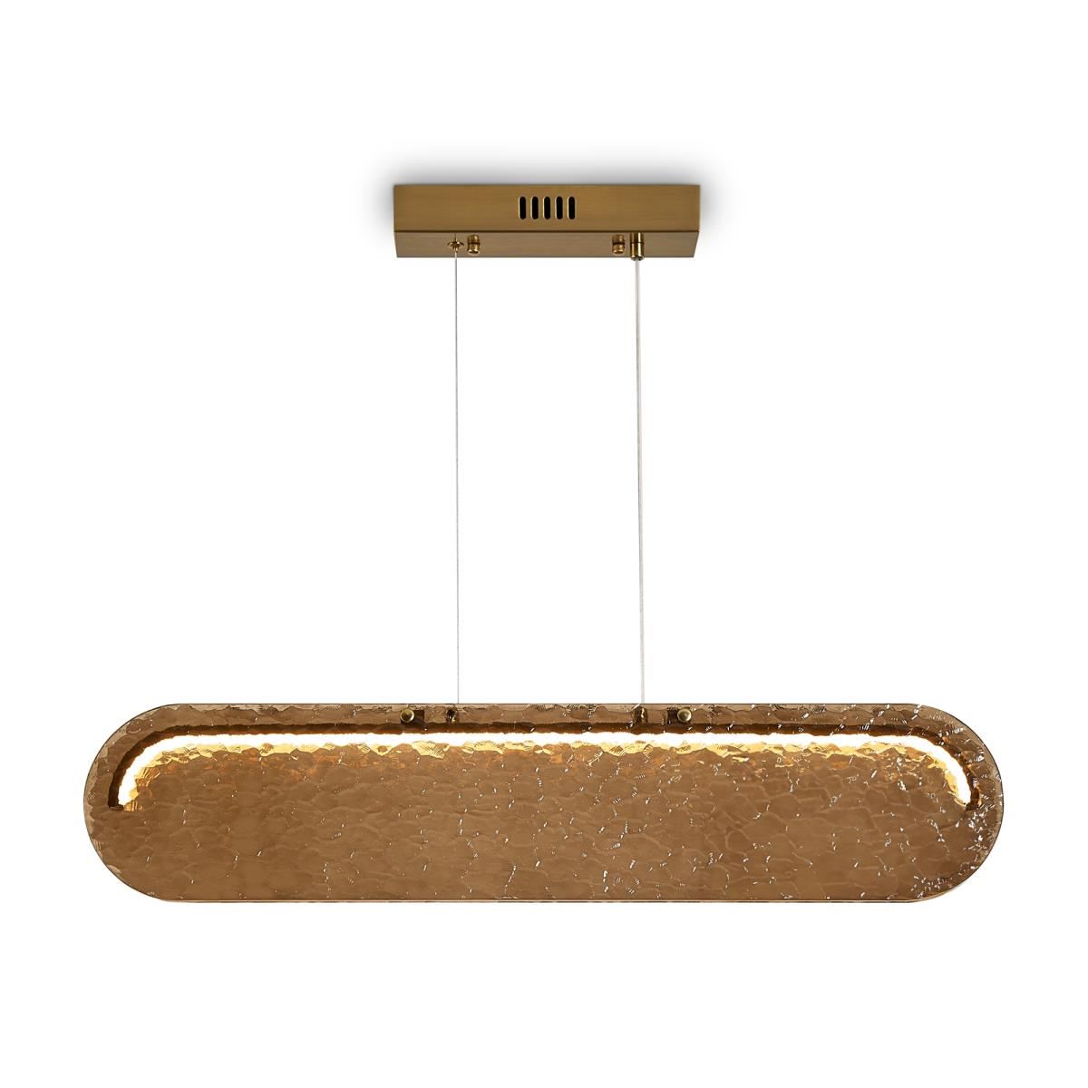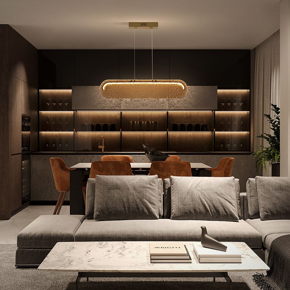 Стеклянные подвесные светильники Lunar с рельефным стеклом в двух цветовых вариантах: коньячном, белом матовым и прозрачным. Две формы плафонов: горизонтальный вытянутый и круглый, напоминающий очертания луны. Арматура — металл латунного цвета. Источник света - LED 3000 K. Дизайн сочетает современные формы с традиционными материалами, создавая эффектное освещение. Рельефное стекло добавляет интересную игру света и тени.