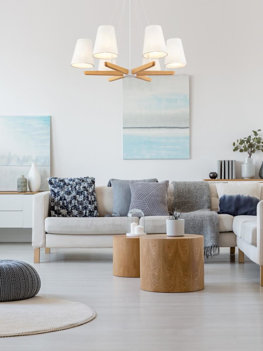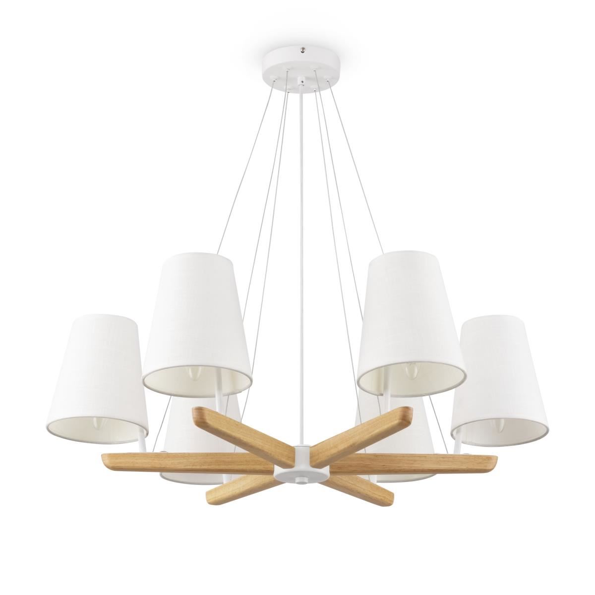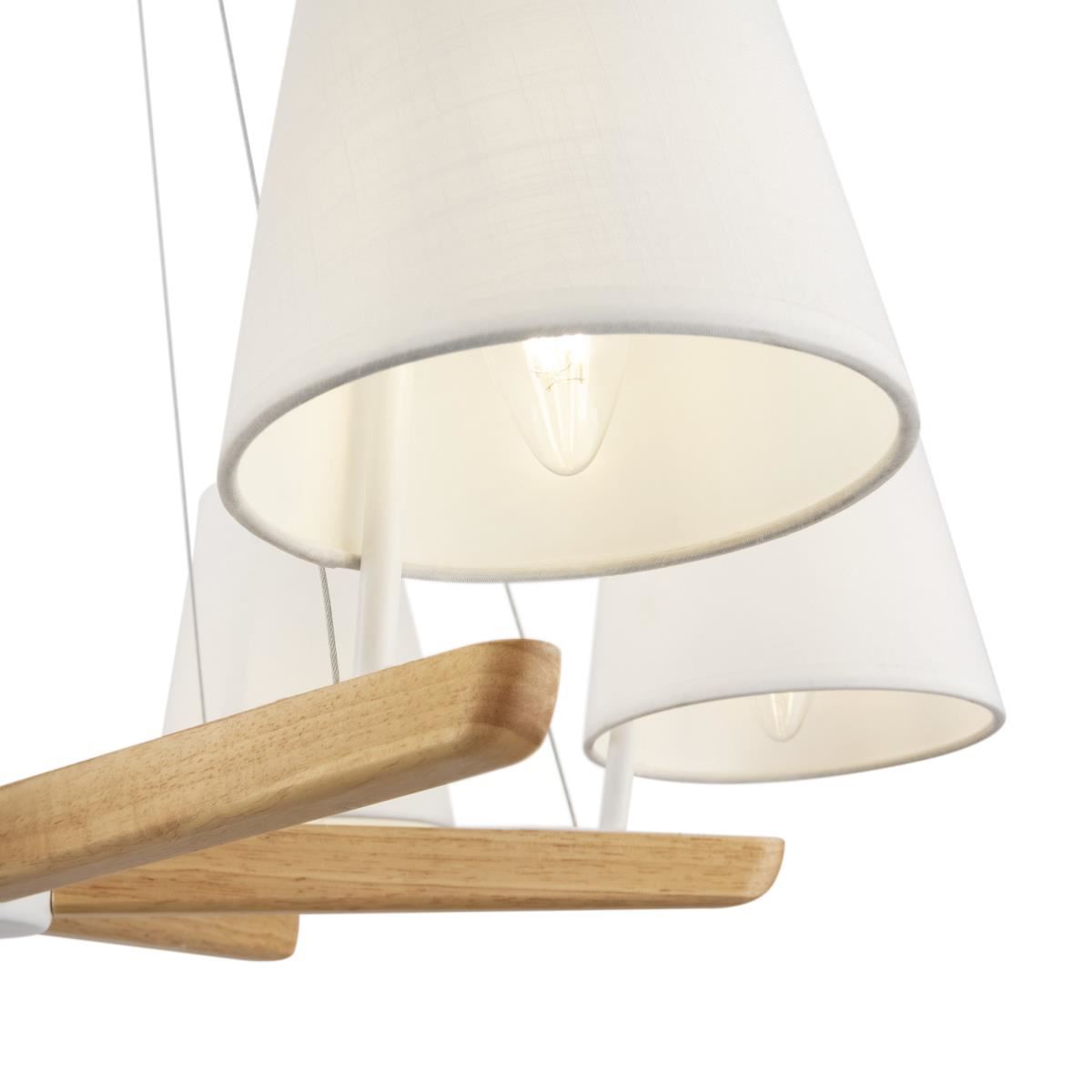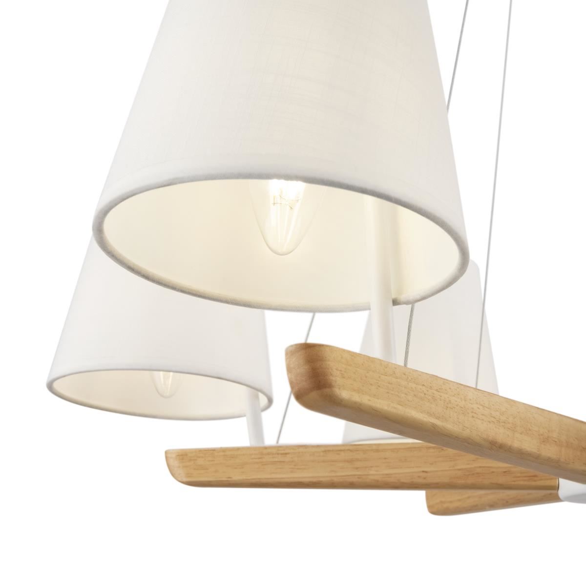Натуральные материалы высоко ценятся в современном дизайне: они добавляют обстановке тепла и уюта, смотрятся стильно и необычно. Эко-элементы – отличительная черта серии Arellano. Арматура светильника сочетает металл белого цвета и дерево. Приятный оттенок природного материала подчеркнут текстильными абажурами. Они окрашены в белый тон, что позволяет светильнику дополнить любую цветовую гамму. Ткань мягко пропускает свет, делая его уютным и комфортным для зрения. Конструктивные особенности – отсутствие центрального стержня – придают композиции визуальной легкости и компактности. В спальне и гостиной, помещениях HoReCa, загородных домах такой светильник будет смотреться по-настоящему эффектно. Он идеален для эко-стилей, скандинавских и минималистичных интерьеров, подойдет для таких классических решений как модерн и кантри.