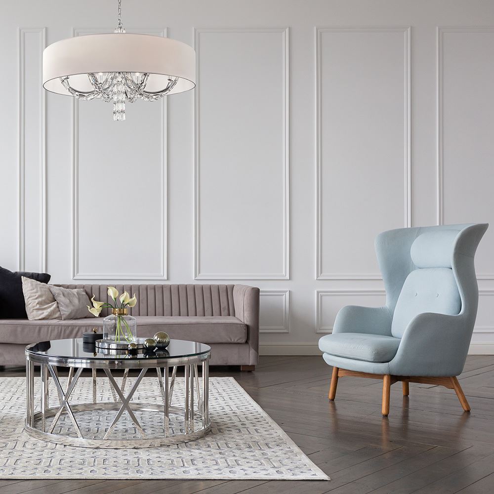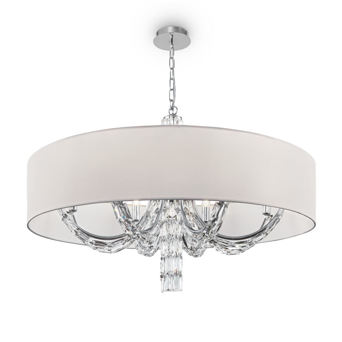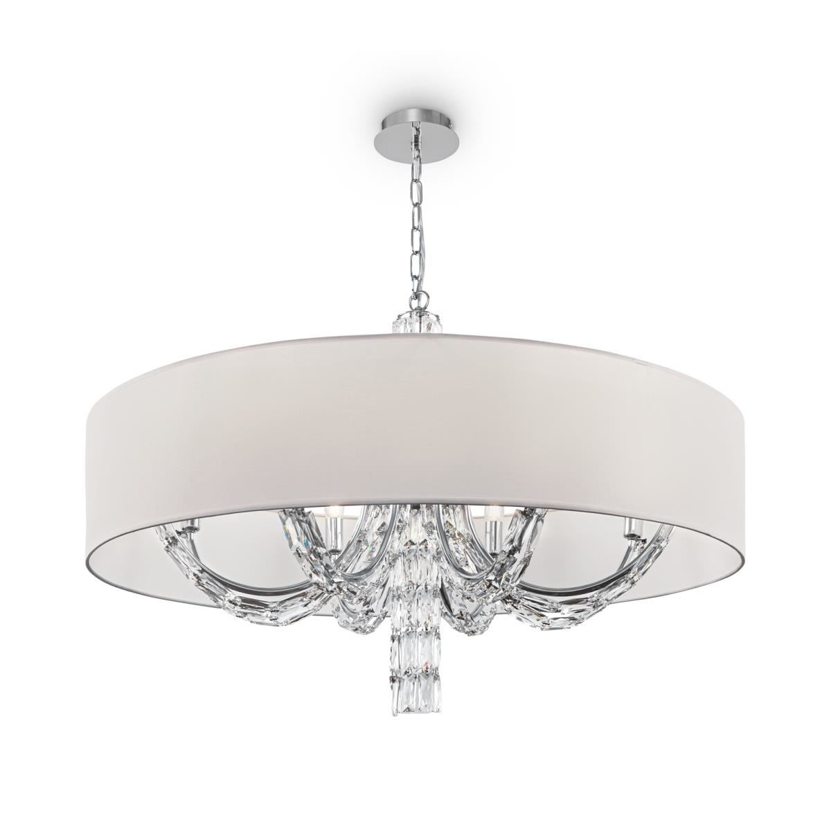 Подвески из массивных граненых кристаллов на рожках и в основании делают серию Talento непохожей на других. Арматура изготовлена из металла с хромированным покрытием. Абажуры сделаны из белой ткани, нанесенной на ПВХ. Высота люстр регулируется длиной цепи. Широкая линейка светильников, представленных в серии, включает люстру на 7 и 5 плафонов, несколько бра и настольных ламп, торшер— это идеально сформированный, выдержанный комплекс для подсветки интерьеров в стиле неоклассика, ар-деко, модерн.