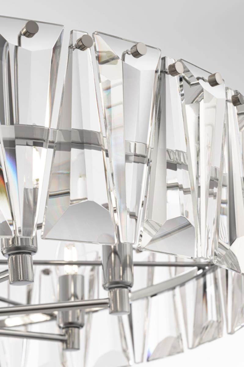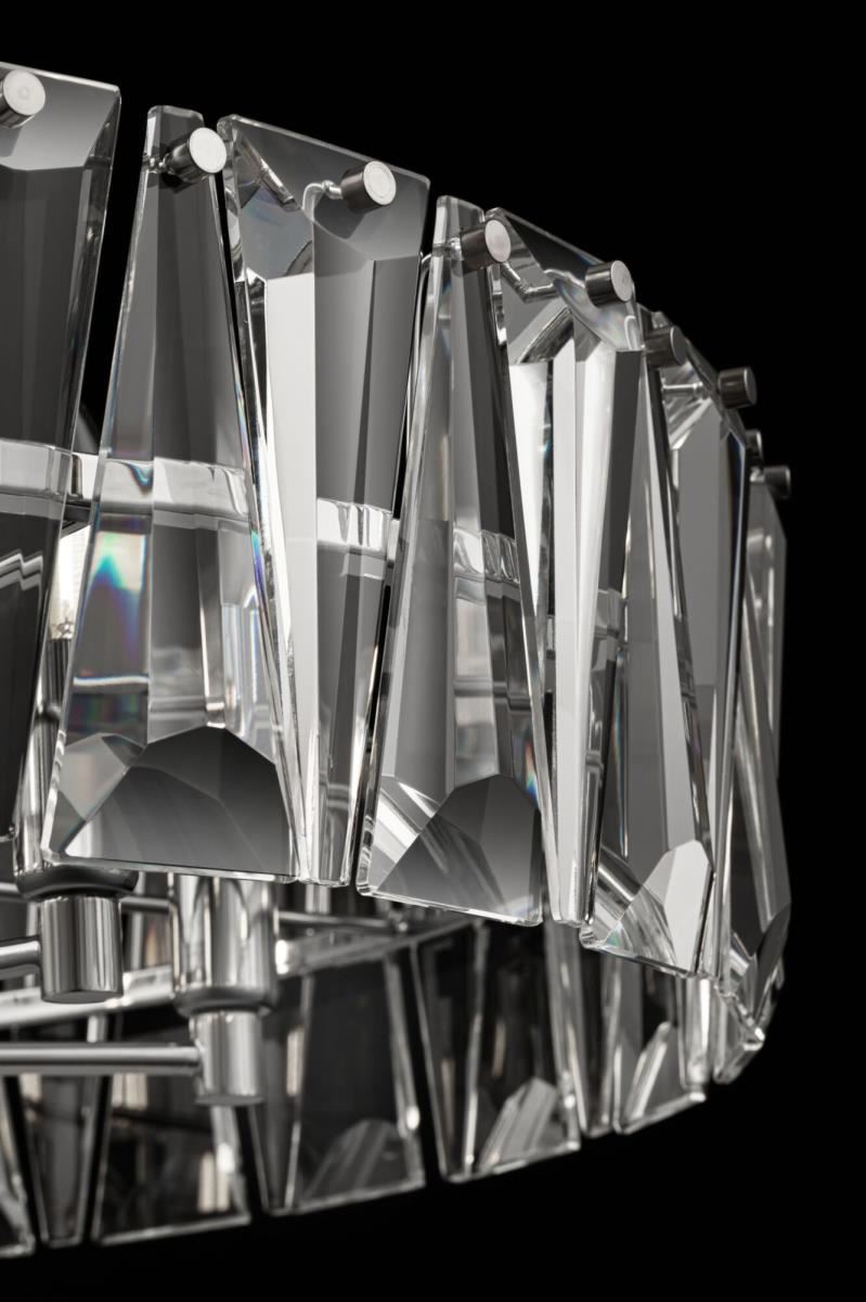 Массивные кристаллы – главная деталь в оформлении светильников Puntes. Серия включает подвесные люстры различного диаметра, настенные, настольные и напольные светильники. Каждая модель представлена в двух классических цветовых вариациях: золотом и хромированном оттенке металлической арматуры. Высота люстр регулируется длиной цепи. Единое цветовое оформление и повторяющийся декоративный элемент позволяют легко сочетать модели серии между собой, продумывать различные световые сценарии и создавать акцентное освещение по зонам.