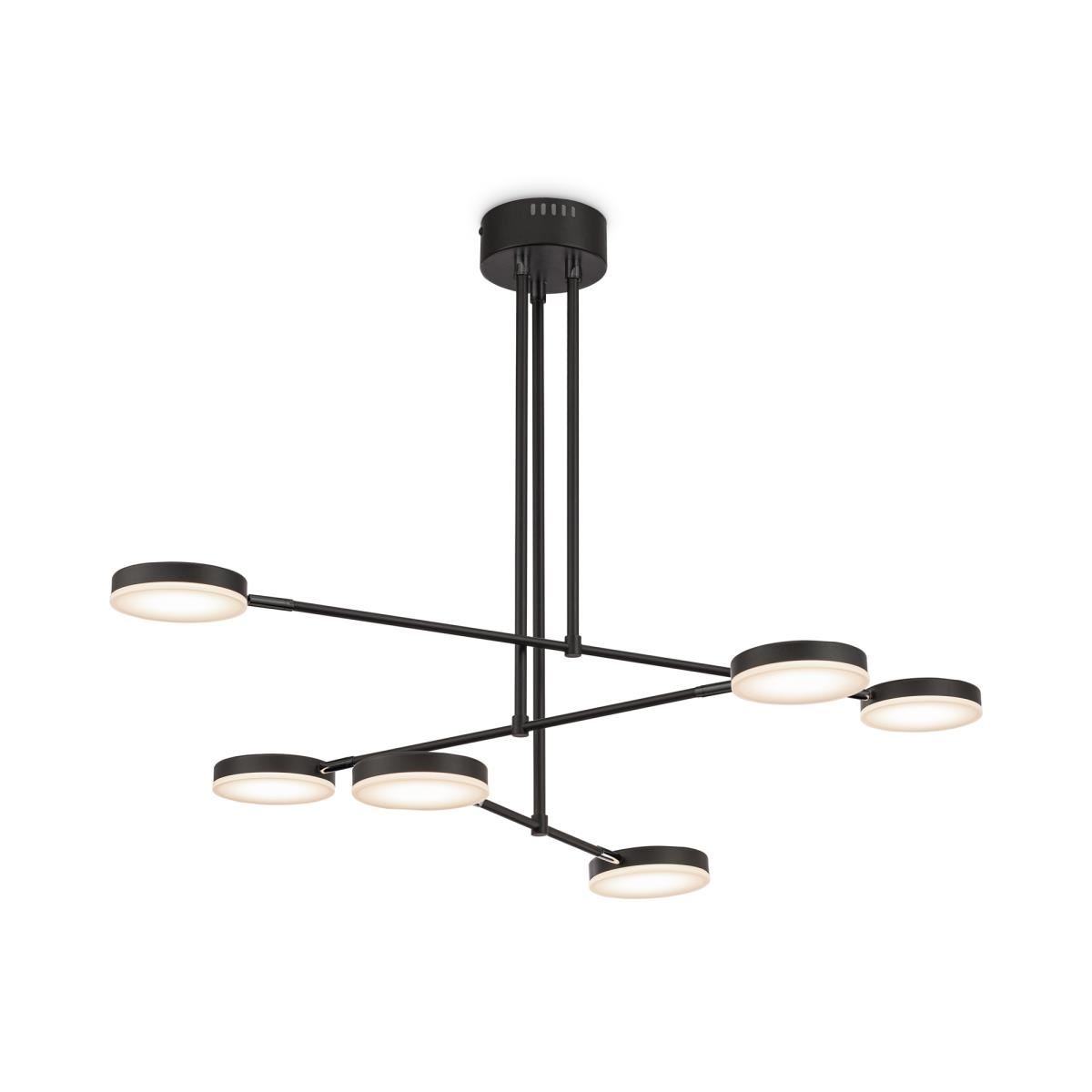 В основе дизайна светильников этой серии лежит трехмерная ритмическая композиция из геометрических тел. На тонких пересекающихся между собой стержнях установлены цилиндрические плафоны, каждый из которых вращается на 340° в горизонтальной и 90° в вертикальной плоскостях. Гибкий функционал расширяет возможности для формирования различных сценариев и интуитивного светового зонирования помещения. За счет безрамочной конструкции плафона и интегрированного LED-модуля обеспечивается яркое равномерное свечение по всей поверхности рассеивателя. На корпусе бра и настольной лампе установлены выключатели с функцией плавного диммера. Серия объединяет подвесные, настенные, настольные и напольные модели. Вместе они составляют готовый ансамбль для комплексной подсветки современного интерьера.
