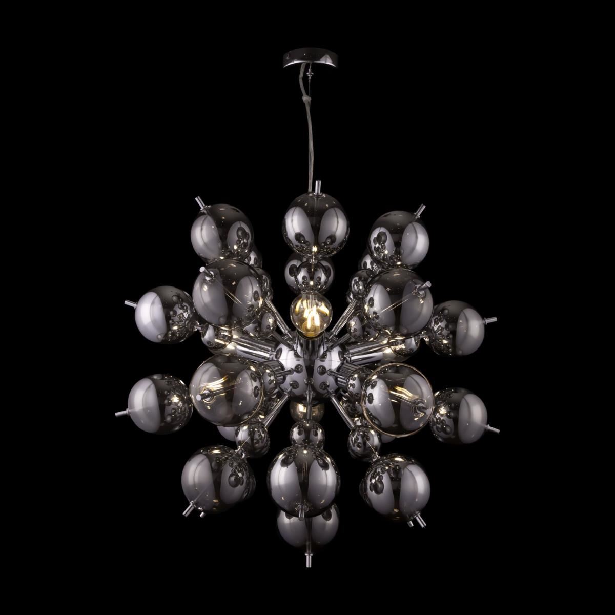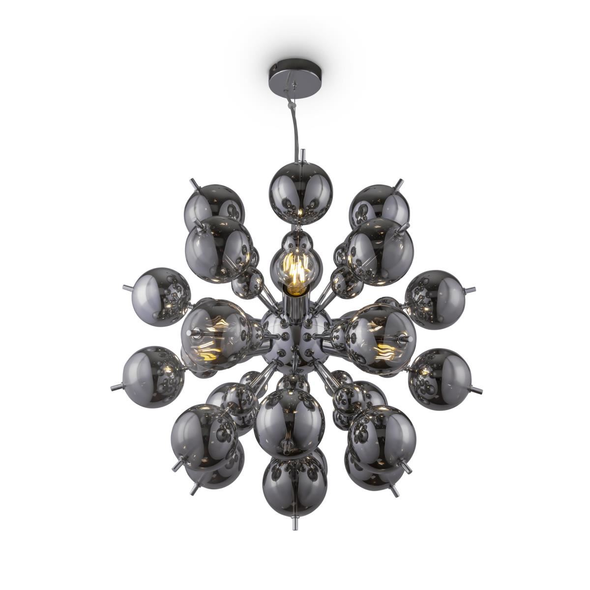 Серия светильников Bolla напоминает пузырьки шампанского или ключевой воды в янтарно-латунном и дымчато-никелированном оттенках. Застывшие в моменте, они превратились в произведения искусства, где свет, играя удивительным образом, отражается в гальванизированном стекле. Светильник состоит из элементов из выдувного стекла с гальванической покраской. В двух вариантах цветов: янтарном и дымчатом. Серия включает подвесные и потолочные светильники.