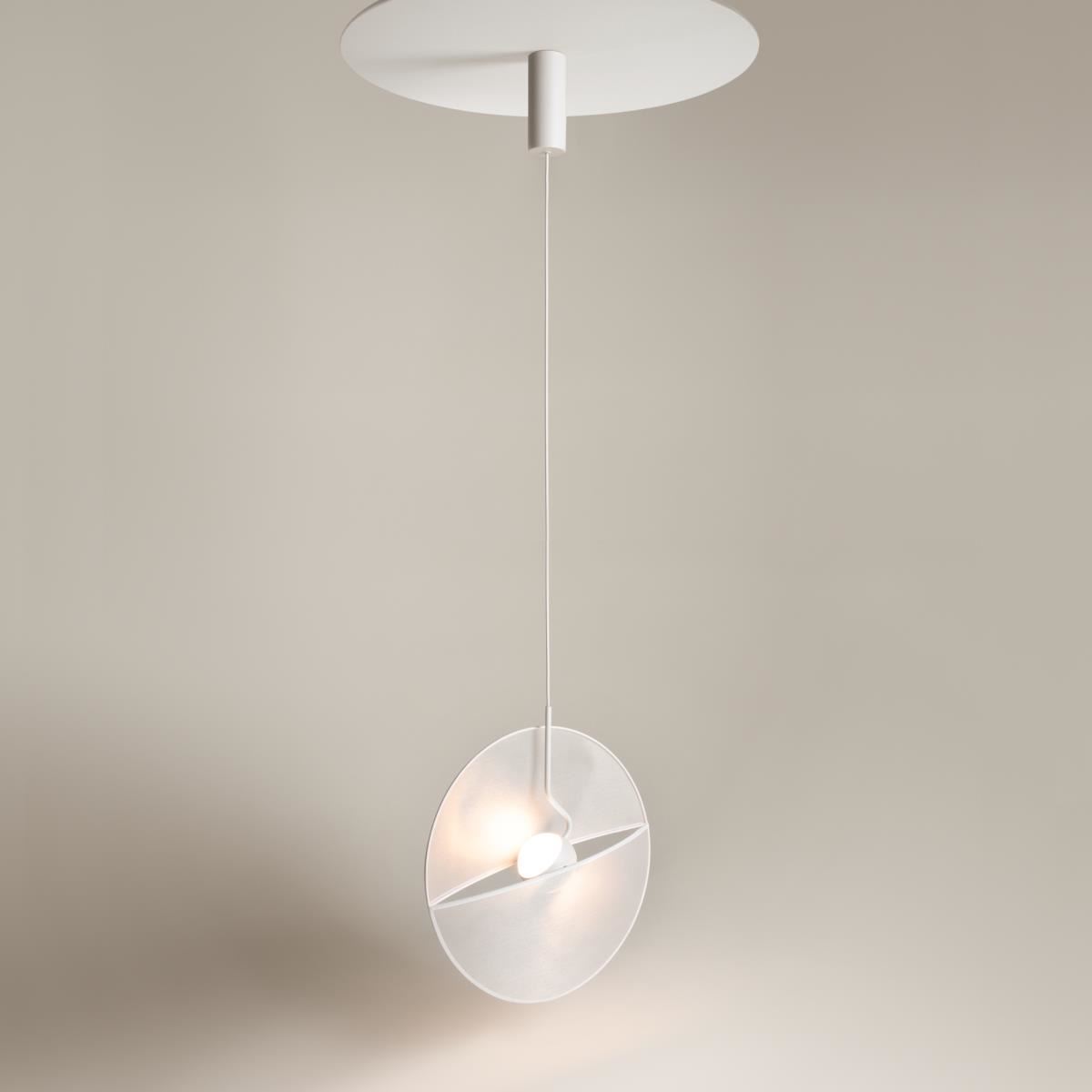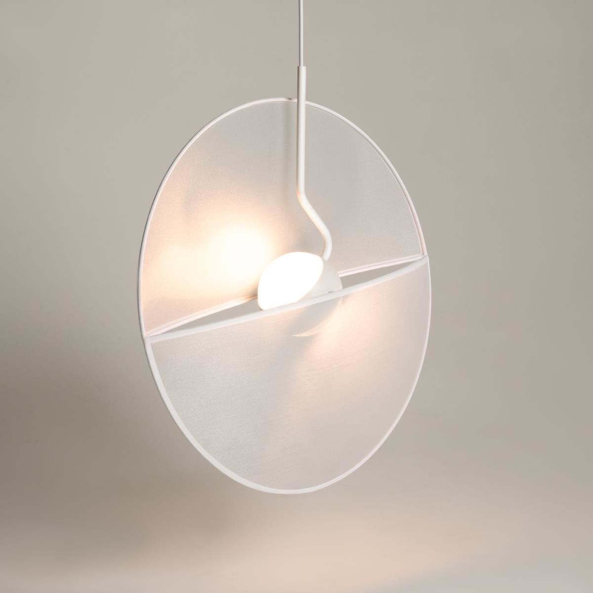 Вслед за мастерами эпохи возрождения, постигавших свойства отраженного света и многогранность текстур, дизайнеры создали серию с уникальным обликом и световым рисунком. Сферический плафон рассекает полупрозрачный тканевый диск пополам: словно солнце, восходящее над водной гладью. Светоотражающая ткань обладает ярко выраженной текстурой. Металлические элементы – арматура и плафон – окрашены в белый оттенок. Матовые рассеиватели скрывают 2 светодиодных источника света. Это обеспечивает мягкое рассеянное освещение. Модель универсальна и практична: расположенный вертикально тканевый элемент не собирает пыль, а при необходимости снимается для чистки. Длина проводов регулируется, позволяя адаптировать светильник под любую высоту потолков. Серия включает подвесы на 1 и 3 плафона. Визуально легкий силуэт предназначен для современных пространств в стиле фьюжн, минимализм, сканди, хай-тек.