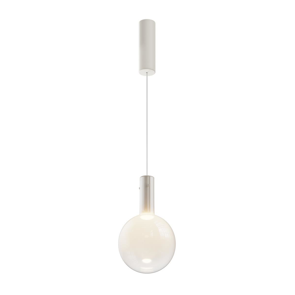 Металлическая арматура, цвет - черный, белый. Выдувной плафон-шар из стекла с вытянутым цилиндрическим основанием в трех цветах: дымчато-черный, туманно-белый, бежево-коньячный. LED-источник света в основании плафона. Цветовая температура 3000К. Два диаметра плафонов и регулируемая длина проводов для создания разнообразных композиций.