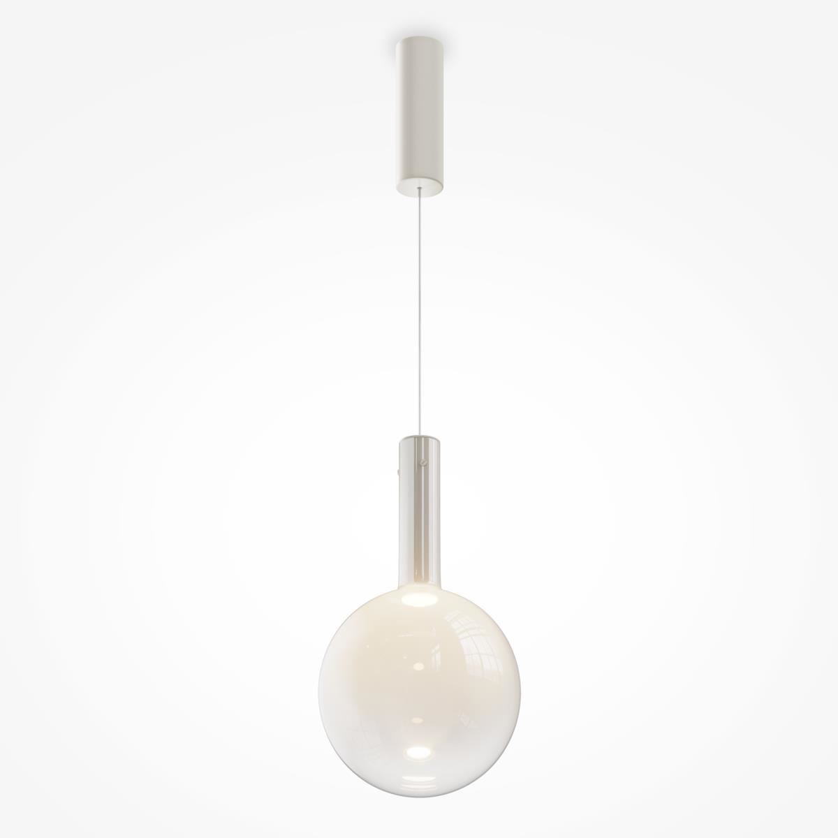 Металлическая арматура, цвет - черный, белый. Выдувной плафон-шар из стекла с вытянутым цилиндрическим основанием в трех цветах: дымчато-черный, туманно-белый, бежево-коньячный. LED-источник света в основании плафона. Цветовая температура 3000К. Два диаметра плафонов и регулируемая длина проводов для создания разнообразных композиций.